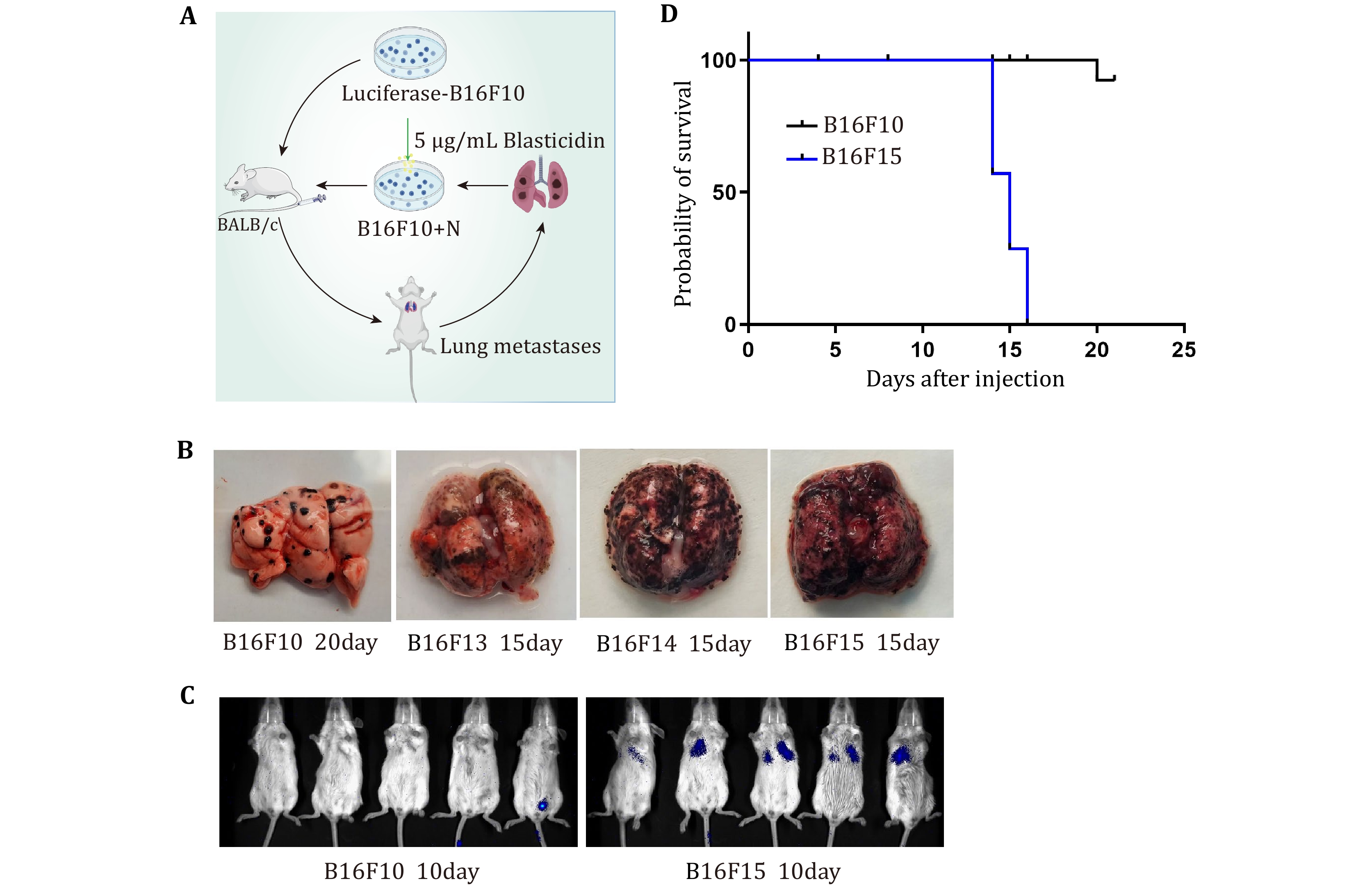 Tumor metastasis, responsible for approximately 90% of cancer-associated mortality, remains poorly understood. Here in this study, we employed a melanoma lung metastasis model to screen for metastasis-related genes. By sequential tail vein injection of mouse melanoma B16F10 cells and the subsequently derived cells from lung metastasis into BALB/c mice, we successfully obtained highly metastatic B16F15 cells after five rounds of in vivo screening. RNA-sequencing analysis of B16F15 and B16F10 cells revealed a number of differentially expressed genes, some of these genes have previously been associated with tumor metastasis while others are novel discoveries. The identification of these metastasis-related genes not only improves our understanding of the metastasis mechanisms, but also provides potential diagnostic biomarkers and therapeutic targets for metastatic melanoma.