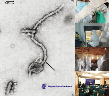 Prevention and control of zoonoses at their source: from the Chinese perspective (a) Electron microscopic image of Ebola virus-like particles produced by co-expression of VP40 and GP from insect cells (Photographed by Xuexing ZHENG); (b) The surveillance of wild bird influenza in China (Photographed by Xiao YUAN); (c) Recovering Bacillus anthracis from samples (Photographed by Junfeng LIU); (d) The control of zoonoses in a cowhouse (Photographed by Junfeng LIU); (e) Strengthen international cooperation: Training African officials i [Detail] ...