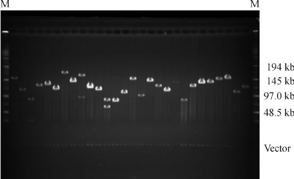 Cassava ( Manihot esculenta ) is known as the third most important food crop in the tropics and also used for industrial feedstock for biofuels. Two new bacterial artificial chromosome (BAC) libraries were constructed for W14 ( M. Esculenta ssp. flabellifolia ), a wild ancestor of domesticated cassava. The libraries were constructed with Eco RI and Hin dIII insertion vectors, respectively. The Eco RI library has 29952 clones with an average insert size of 115 kb, while the Hin dIII library consists of 29952 clones with an average insert of 129 kb. The combined libraries contain a total of 59904 clones with an average insert size of 125 kb, representing approximately 10 × haploid genome equivalents. A total of 29952 clones were fingerprinted and resulted in a cassava physical map composed of 2485 contigs with an average physical length of 336 kb and 2909 singletons, representing approximately 762 Mb of the cassava genome. 5000 clones located at the ends of BAC contigs were selected and sequenced. A total of 6077 SNPs and 231 indels were identified, that covered 459 gene sequences, of which 6 genes were associated with starch and sucrose metabolism. This BAC-based physical map provides valuable tools to understand the genetics and evolution of cassava.