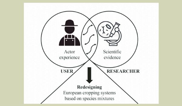 The EIP-Agri multiactor approach was exemplified during a 3-day workshop with 63 project participants from the EU H2020 funded project “Redesigning European cropping systems based on species MIXtures”. The objective was to share firsthand experience of participatory research among researchers who were mostly not familiar with this approach. Workshop participants were divided into smaller multidisciplinary groups and given the opportunity to interact with representatives from eight actor positions in the value chain of the agrifood cooperative Terrena located in Western France. The four stages of the workshop were: (1) key actor interviews, (2) sharing proposed solutions for overcoming barriers, and (3) developing possible interdisciplinary concepts. Expressions of frustration were recorded serving both as a motivation for group members to become more aware of the scientific concerns and practices of their colleagues, as well as a recognition that some researchers have better skills integrating qualitative approaches than others. Nevertheless, the workshop format was an effective way to gain a common understanding of the pertinent issues that need to be addressed to meet overall multiactor-approach objectives. Working with the actor networks was identified and emphasized as a means to overcome existing barriers between academia and practice in order to coproduce a shared vision of the benefits of species mixture benefits.