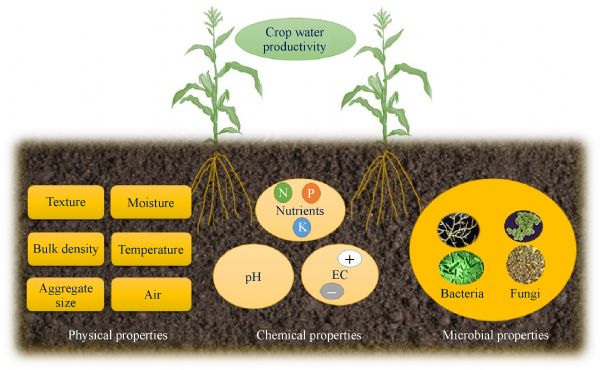 • The linkage between crop water productivity and soil properties were summarized • Knowledge of soil microbial effects on crop water productivity is still limited • Knowledge of interactions of soil factors on crop water productivity is still limited
