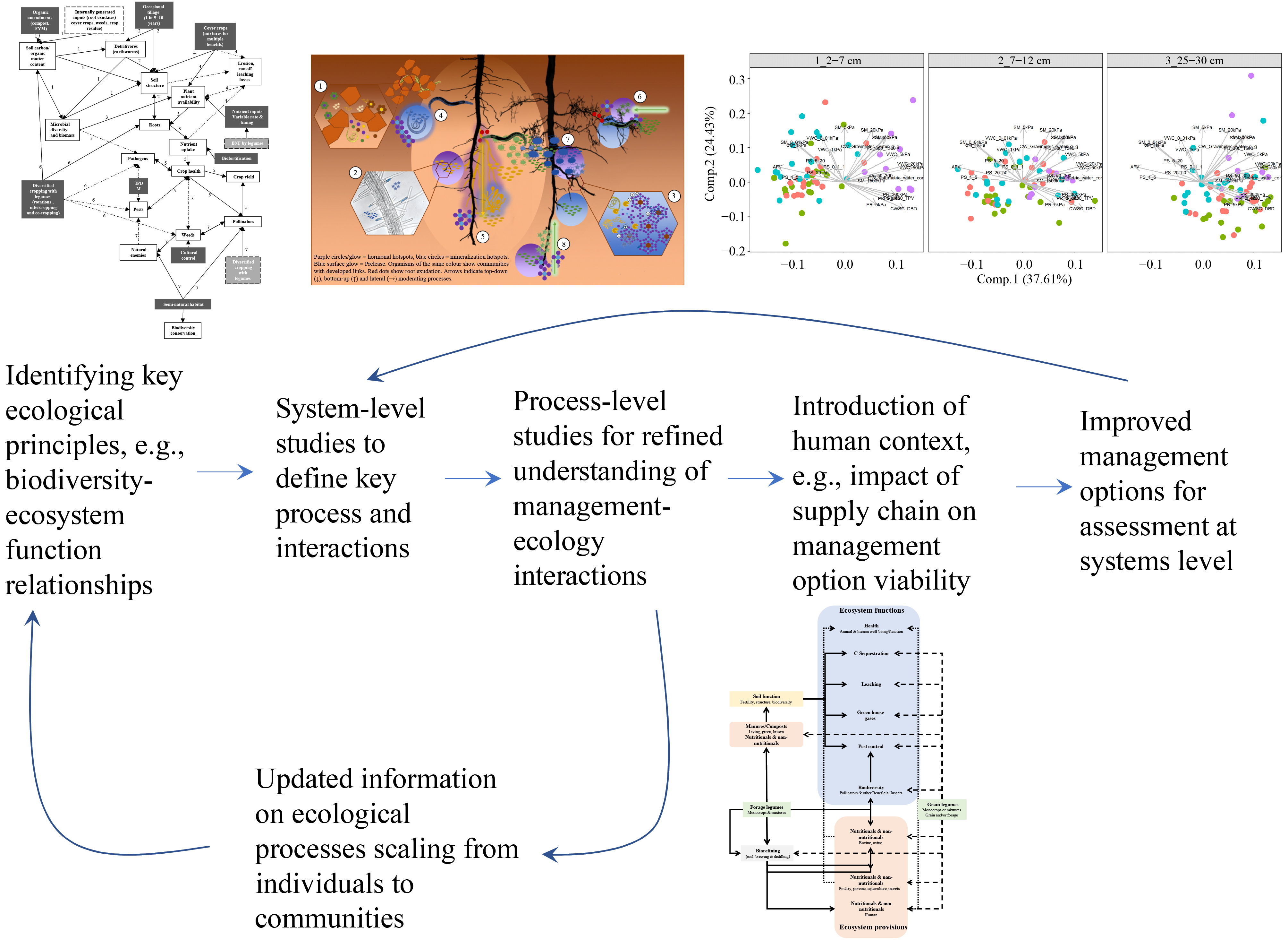 ● Diversification enhances nature-based contributions to cropping system functions. ● Soil management to improve production and ecosystem function has variable outcomes. ● Management of the production-system to use legacy nutrients will reduce inputs. ● Intercrops, companion crops and cover crops improve ecological sustainability. ● Sustainable interventions within value chains are essential to future-proof agriculture.