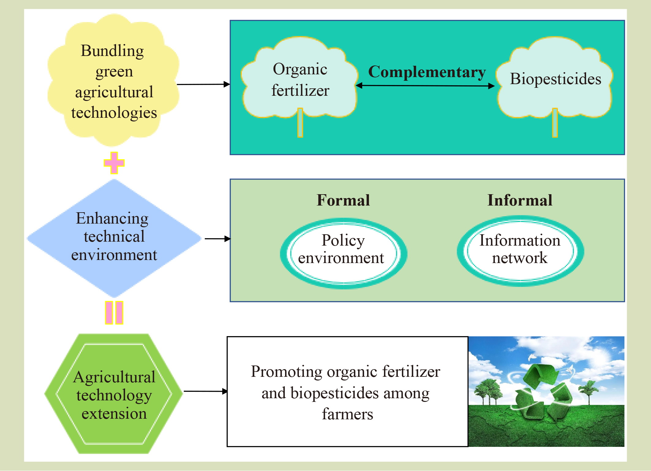 ● Farmer adoption of organic fertilizer and biopesticides was found to be positively correlated. ● The technical environment had a significant positive impact on farmers’ adoption of organic fertilizers and biopesticides. ● Technology training and local accessibility to new agricultural technologies enhanced both the adoption of organic fertilizers and biopesticides. ● Exchanging information about production techniques with others generally increased the likelihood of adopting organic fertilizers by 6%.