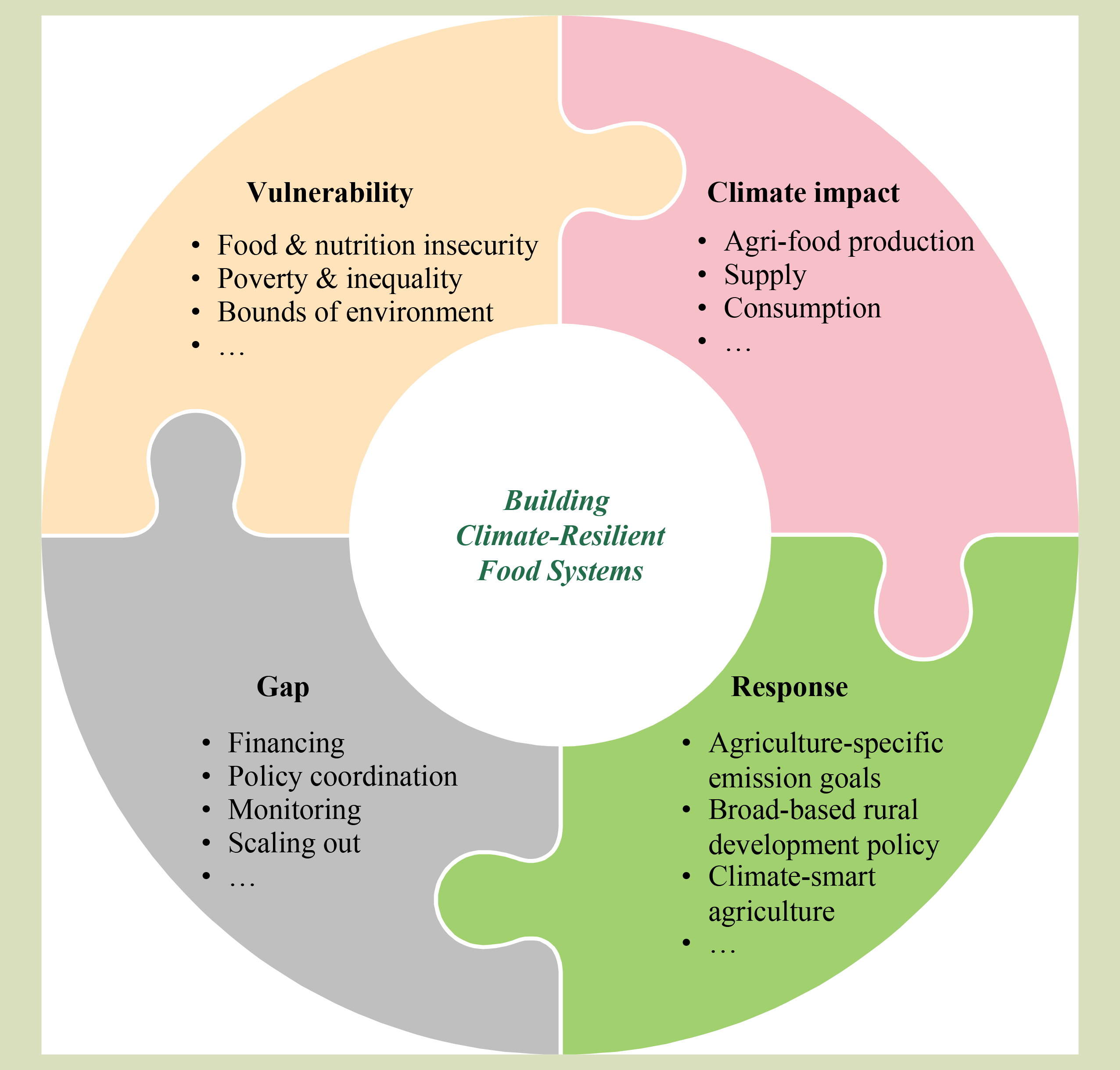 ● Food systems in East and Southeast Asia are vulnerable to global warming. ● Regional governments strive for adaption, mitigation and financing for climate resilience. ● Vulnerabilities of food system actors and activities exacerbate the challenges faced. ● Agriculture-specific goals, climate-smart agriculture and market integration are key to building climate resilience.