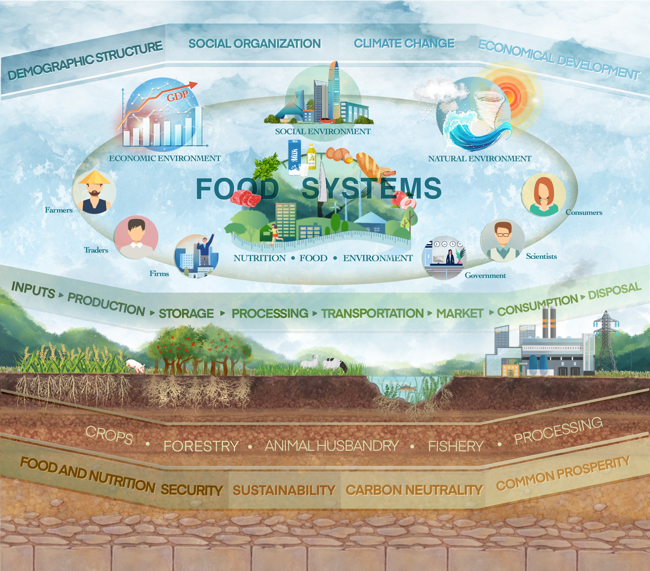 The global food systems face significant interrelated and complex challenges, including climate change, extreme weather events, natural resource depletion, biodiversity loss, emerging plant and animal diseases, conflict and trade shocks. Food systems encompass agriculture, forestry, animal husbandry, fishery, food processing and service industries. It also includes all actors and their interconnected roles in the whole process of technology innovation, inputs, production, storage, transportation, processing, sales, consumption and disposal, as well as the broader [Detail] ...