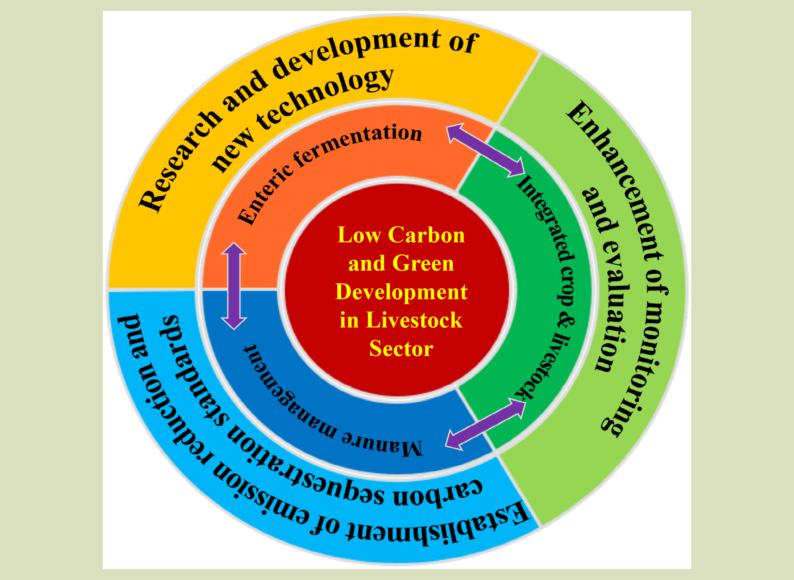 Animal husbandry is a major source of greenhouse gas (GHG) emissions in agriculture. Mitigating the emissions from the livestock sector is vital for green development of agriculture in China. Based on National Communication on Climate Change of United Nations, this study aims to investigate the characteristics of GHG emissions of animal husbandry during 1994 to 2014, introduce major emission reduction technologies and their effectiveness, and investigate options for emission reduction for the livestock sector in China. It proposes that control of pollution and carbon emissions can be realized through increased animal productivity, improved feed quality and recycling of animal manure. This paper thus concludes with suggestions of green and low-carbon development of animal husbandry, including the research and development of new technology for emission reduction and carbon sequestration of the livestock sector, enhancement of monitoring and evaluation, and establishment of emission reduction and carbon sequestration standards.