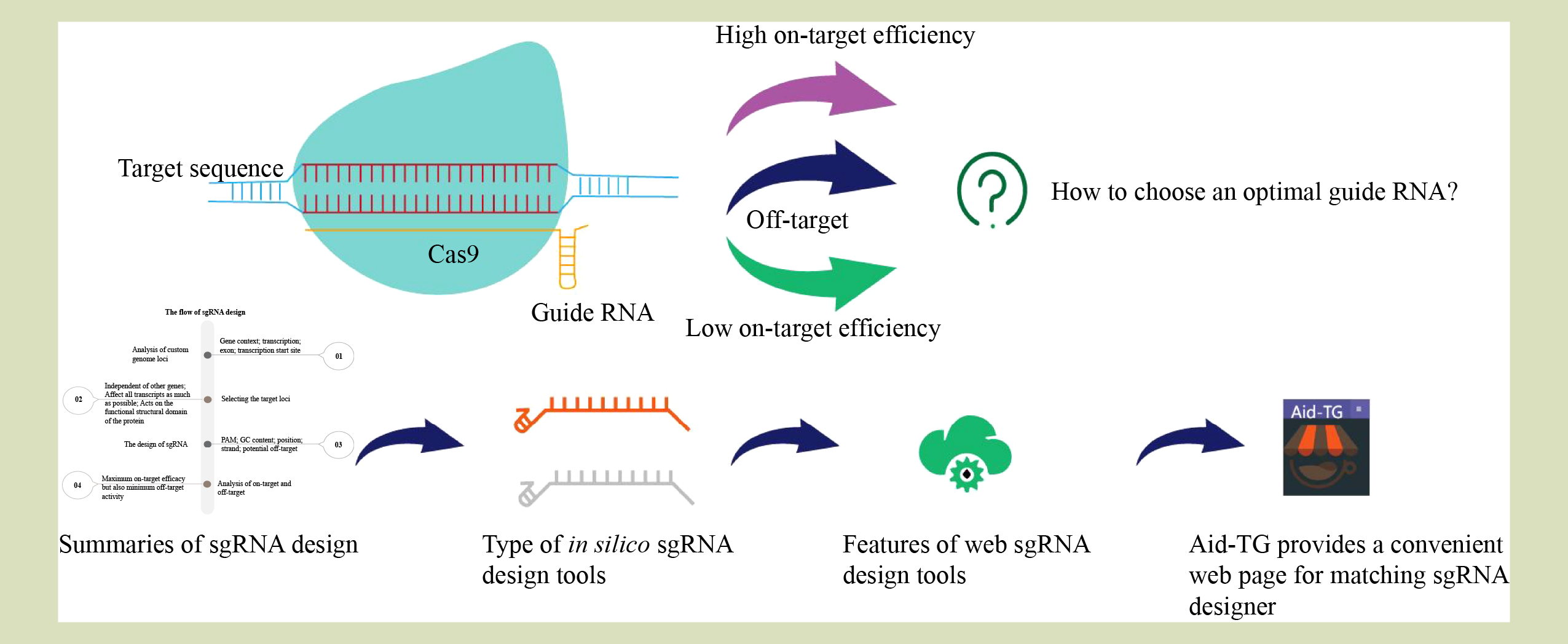 CRISPR-mediated gene-editing technology has arguably driven an unprecedented revolution in biological sciences for its role in elucidating gene functions. A multitude of software has been developed for the design and analysis of CRISPR/Cas experiments, including predictive tools to design optimally guide RNA for various experimental operations. Different in silico sgRNA design tools have various application scenarios and identifying the optimal design tools can often be a challenge. This paper describes the sgRNA design workflow in experiments, the classification of sgRNA designers, previously published benchmarking work of in silico designers, and the criteria involved how to select an sgRNA web server. Through basic testing, this paper comprehensively overviews and compares the features of 43 web server designers to provide a reference for the readers. Ultimately, the project developed an integrated platform, called Aid-TG, which helps users find appropriate tools quickly.
