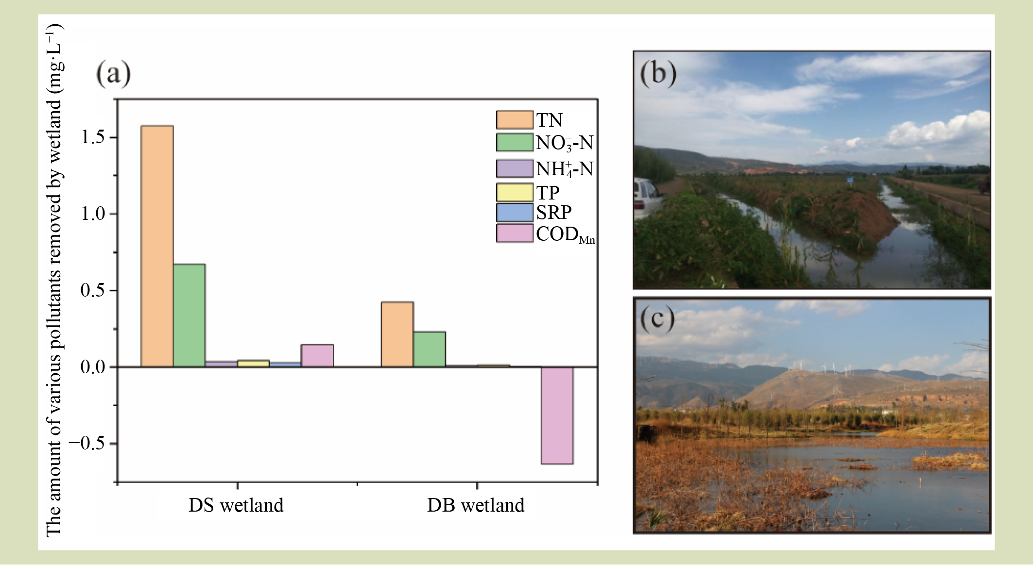 The agricultural and livestock activities surrounding the rivers flowing into the lakes have caused non-point source pollution, leading to excessive amounts of nutrient salts in downstream rivers. Introducing river water into constructed wetlands along river course has proven to be an effective solution for decreasing nitrogen (N) and phosphorus (P) loads. This paper reports 9 years of monitoring the Yong’an River and its surrounding constructed wetlands in the upper reaches of Erhai Lake, located in Yunnan Province, China. This study analyzed the main types of pollutants in the river, and evaluated the removal efficiency of pollutants by the constructed wetlands. The findings indicate that total nitrogen (TN) and nitrate nitrogen (NO3–-N) are the primary pollutants in the Yong’an River, which exhibit variation throughout the year corresponding to the alternating wet and dry seasons. Although constructed wetlands are effective in removing NO3–-N and P, their efficacy in removing ammonium nitrogen (NH4+-N) and organic pollutants is limited. This limitation can be attributed to the lack of timely disposal of aquatic plant residues. This research contributes to the understanding of the potential issues that may arise during the extended use of constructed wetlands and provides solutions to address them.