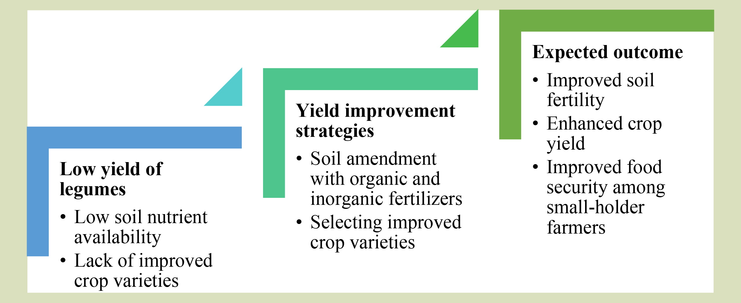 Bean (Phaseolus vulgaris) yields in Africa can be increased through the application of phosphorus and nitrogen fertilizers, as both nutrients are low in African soils. However, using greener technologies is preferred to mineral fertilizers for maintaining soil health. In this study, Rhizobium inoculation and moderate P supply (0, 10, 20, and 30 kg·ha−1) to two bean cultivars were evaluated in consecutive years at Hawassa for their effects on plant growth, nodulation, and grain yield. The results showed that, relative to the uninoculated control, the two bean cultivars responded strongly to Rhizobium inoculation, with strain HB-429 outperforming strain GT-9 in both 2012 and 2013. Shoot biomass, nodule number and nodule dry matter per plant were increased by 9%, 40%, and 54%, respectively, in 2012, and by 20%, 39%, and 13% in 2013 with strain HB-429 inoculation. This resulted in increased pod number per plant, seed number per pod and grain yield by 56%, 51%, and 49% in 2012, and by 38%, 25%, and 69% in 2013, respectively, with strain HB-429 inoculation. Bean inoculation with GT-9 also increased grain yield by 35% and 68% in 2012 and 2013, respectively. Applying 10–30 kg·ha−1 P to bean cultivars increased shoot biomass, nodule number, and nodule dry matter per plant by 7% to 39%, 23% to 59%, and 59% to 144% in 2012, respectively, and by 10% to 40%, 21% to 43%, and 12% to 35% in 2013, respectively. Relative to the zero-P control, adding only 10 kg·ha−1 P increased pod number per plant, seed number per pod, and grain yield by 10%, 30%, and 61% in 2012, and by 11%, 11%, and 38% in 2013, respectively. The combined use of Rhizobium inoculation with low P application (20 kg·ha−1) was found to increase bean production in Ethiopia and is thus recommended to resource-poor farmers.