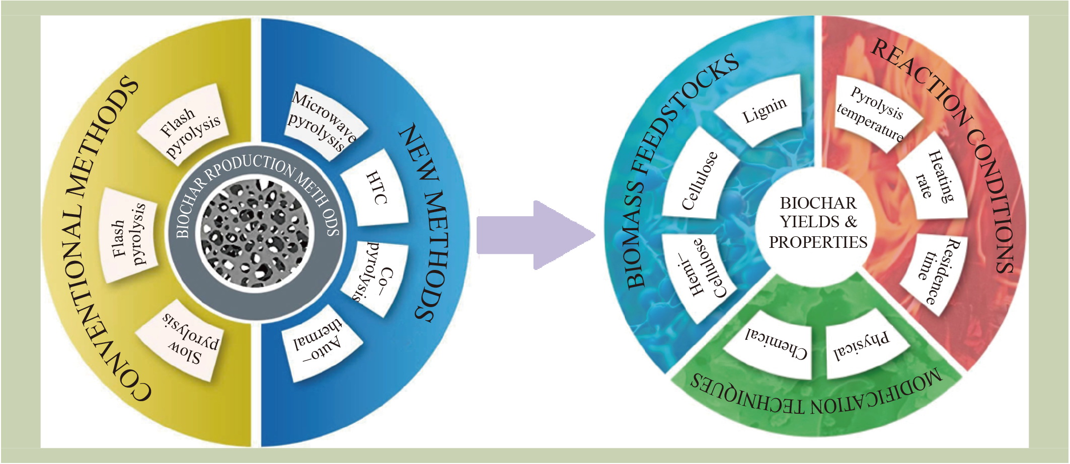 Biochar, a carbon-rich material produced by biomass pyrolysis, is valued for soil amendment, carbon sequestration and environmental remediation. Optimum biochar production depends on understanding key factors, including feedstock characteristics, pyrolysis conditions and modification methods. This review examines various pyrolysis techniques, ranging from well-established to new methods, assessing their mechanisms, strengths and limitations for large-scale production. It emphasizes the importance of feedstock selection, pyrolysis conditions and modification methods in affecting biochar yield and properties. By synthesizing current research findings, this review aims to provide insights into optimizing biochar production for sustainable utilization of lignocellulosic biomass resources.