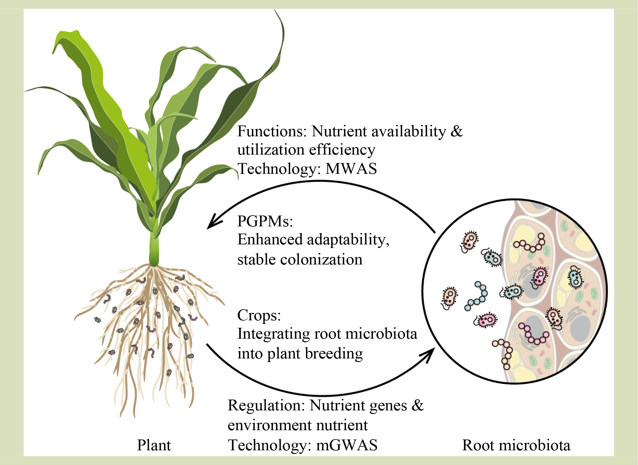Natural plant roots enrich a diverse array of soil microbes, collectively known as the root microbiota. This microbiota interacts synergistically with plants, modulating various physiological processes, including nutrient utilization, which influences plant growth and health. Environmental nutrient conditions and plant nutrient-related genes have been reported to regulate the composition of the root microbiota. Innovative analytical methods, such as microbiome genome- and microbiome-wide association studies, have advanced understanding of the relationships between plants and root microbiota. These methods systematically reveal the interactions between root microbiota and plant nutrient utilization, providing a theoretical foundation for applying root microbiota in agriculture.