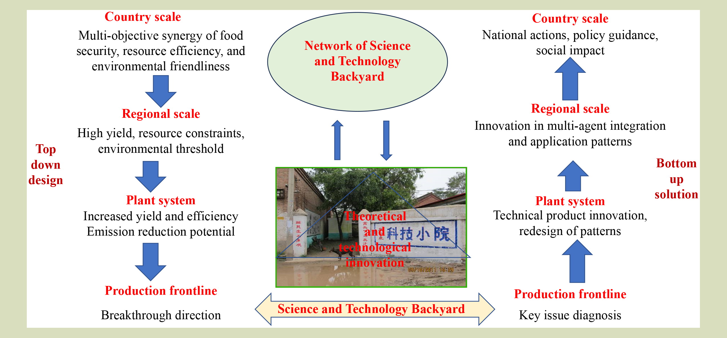 Agriculture is undergoing a pivotal transformation, shifting from a singular focus on food security to interdisciplinary research that encompasses food security, environmental protection and sustainable use of resources. The growing global population and climate change exert the urgency to adopt sustainable practices that balance crop productivity and environmental stewardship. The merit of the approach of past agricultural research, typically centered on single processes and limited to specific disciplines and goals, is now a subject to debate. There is need for a multi-objective approach, an enhancement of the whole industry chain enhancement (involves service from the initial raw material stage to the final consumer) and a holistic approach for sustainable agricultural development. To address these challenges, this article presents an innovative agricultural system research approach. This approach integrates interdisciplinary research and advocates for a combined top-down and bottom-up strategy. The concept of innovative agriculture refers to redesigning systems through technological integration for large-scale application, ultimately aiming to enhance overall crop production, environmental sustainability and efficiency. The top-down approach sets yield targets and environmental thresholds at various scales, aligning with national objectives for food security, resource use efficiency and ecological sustainability. This method determines the necessary technical systems and integration methods. In contrast, the bottom-up approach based on Science and Technology Backyard, analyzes the factors that constrain high crop yields and efficiency, and develops systematic methods to achieve high yield and high efficiency. The integrated agricultural research approach can simultaneously address food security challenges, enhances resource use efficiency, and protect the environmental sustainability. This is essential for advancing sustainable agricultural practices in the face of increasing global demands and environmental concerns.