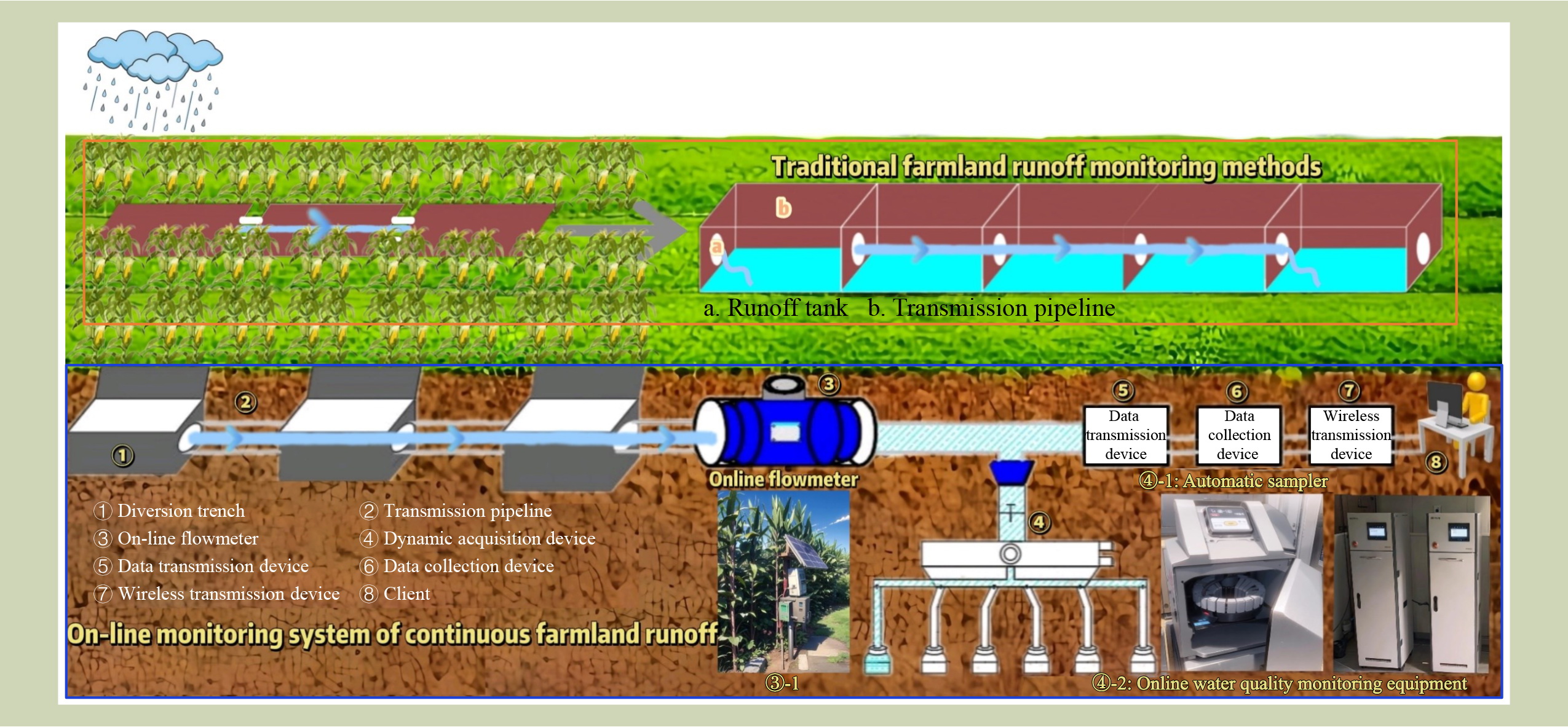Non-point source (NPS) pollution has been the major cause of water quality degradation. However, there are still shortcomings in the current monitoring methods for NPS pollution, such as small monitoring range, error of monitoring data, time-consuming and laborious monitoring process. Although the established method, field experiment plots, was used effectively in the first and second national pollution source census in China. However, when the results obtained by monitoring experimental plots are extrapolated to a field or larger scale, there are considerable uncertainties because of the characteristics of large spatial and temporal variation of farmland. To optimize the farmland surface runoff monitoring methods, an online monitoring system for continuous cropping based on a serial pipeline was developed, which takes diversion trench, online flowmeter and dynamic acquisition device as the main body. Compared with the current farmland monitoring methods, this system can realize more precise automatic monitoring of water quantity and quality, and lower costs. This innovative method will provide greater confidence in the actual monitoring of NPS pollution from farmland and wider practical application. This new method could prove particularly valuable for the next national pollution source census in China.