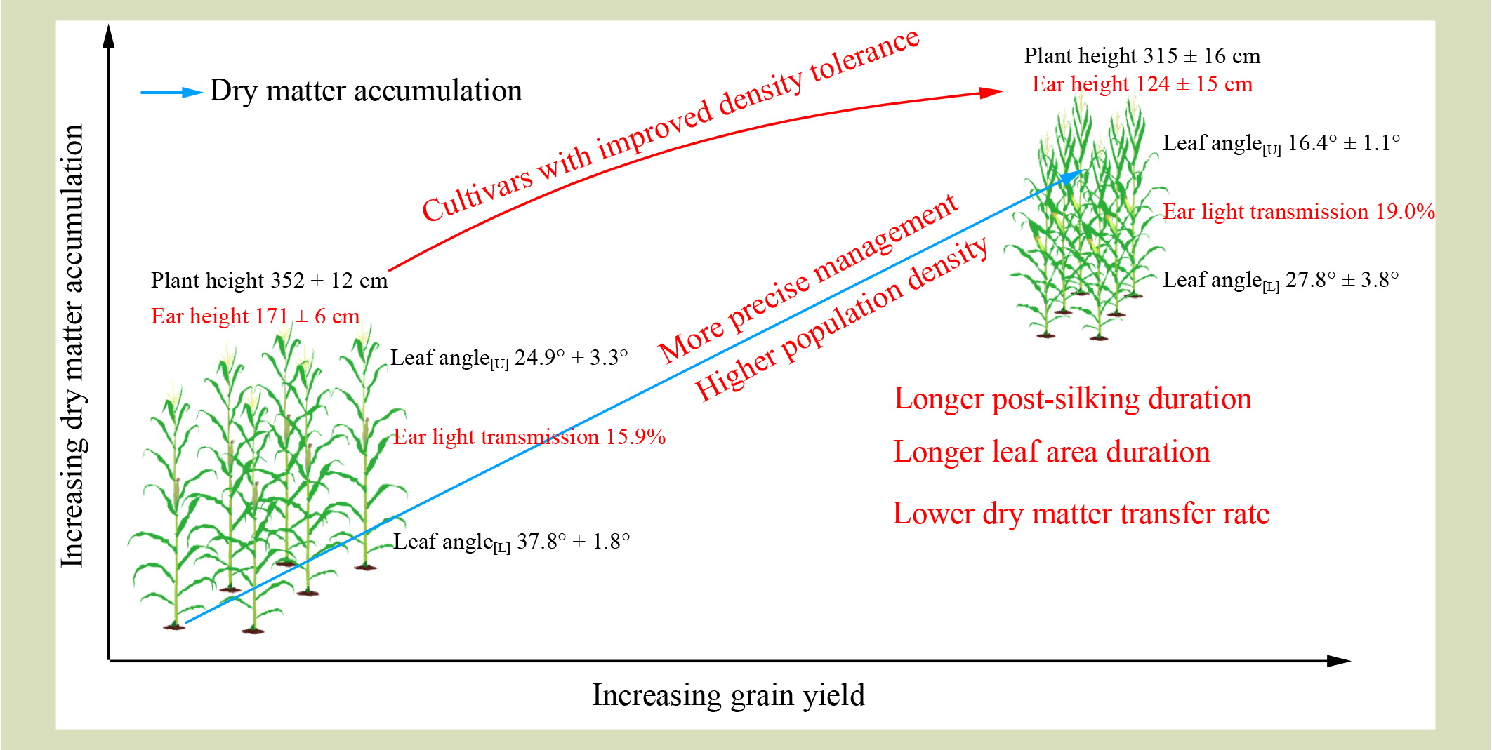 Due to continuous increases in the global population and the limited availability of arable land resources, issues related to food security have attracted increasing attention. Maize is the most productive and most widely planted food crop in China and has the highest yield potential among different crops. Increasing the yield of maize per unit area has become one of the key goals in agriculture in China. This study summarized the key limiting factors, such as solar radiation, temperature, water, soil resources and extreme weather events that currently limit the yield and resource use efficiency of maize production, as well as the main problems existing in the process of maize production, such as unsuitable cultivar selection, low planting density and inappropriate fertilizer application. Then the maize population was optimized on the basis of quantitative design principles. By this approach, crop planting density was matched with solar radiation levels, the population structure was matched with appropriate cultivars, and the plow layer-root system-canopy functions were matched with grain yield to ensure increases in grain yield and resource use efficiency in maize production. These factors can significantly improve maize production and related economic benefits, reduce production costs and environmental burdens, and provide a scientific basis and technical support for realizing sustainable agricultural development in China.