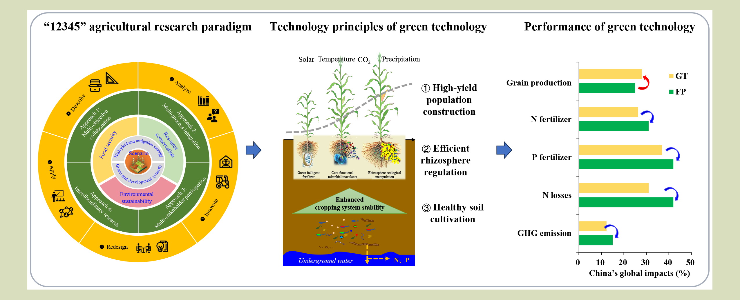 Download cover Download PDFsSecuring sufficient, sustainable and resilient food production with judiciously using mineral fertilizers, while protecting the eco-environment is essential for agricultural sustainable development worldwide. However, the existing agricultural scientific paradigm fails to align with practical production realities, while confronting dual contradictions: reconciling higher grain yields with lower environmental impacts and balancing agricultural economic growth with environmental conservation imperatives. This paper proposes the next-generation “12345” agricultural research paradigm, rooting research in agricultural development, linking knowledge and action across multistakeholders via cross-discipline systematic research. Green technology for increasing grain crop production and efficiency, as a typical example, is used to implement this new scientific paradigm. The components of this paradigm are giving as comprising three key elements, (1) high-yield population construction, (2) efficient rhizosphere regulation technology and (3) healthy soil cultivation. Next the paper examines green technology versus common farmer practice for thousands of fields across the main agricultural production regions in China, achieving substantially increased crop yields and reduced mineral nitrogen fertilizer inputs, thereby enhanced nitrogen use efficiency and reduced environmental footprints. Green technology is offered as being an effective agricultural scientific paradigm to ensure food and environmental security, providing a new example for worldwide food security in the future.