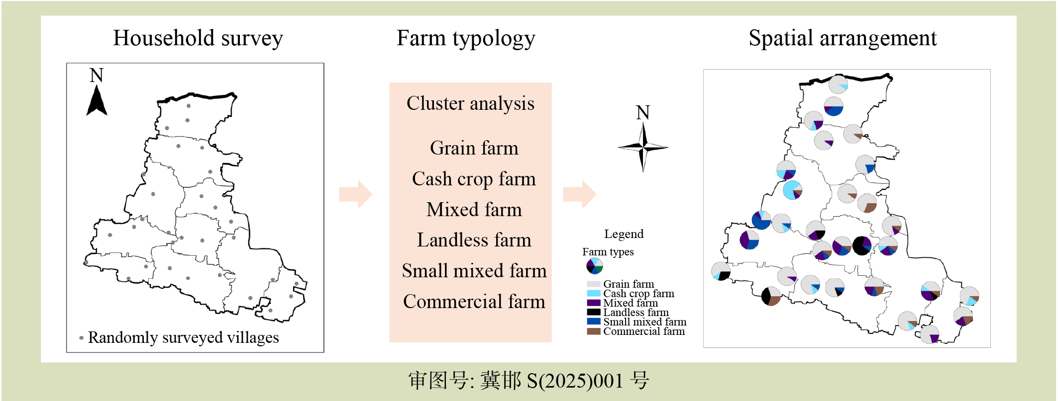 The benefits of integrated crop–livestock systems (ICLS) have been widely discussed, but their application remains limited. The effects of agricultural characteristics and spatial distribution in a landscape on the development of ICLS are not well understood. This study aimed to better understand the current specialization of farming systems to support ICLS development, by capturing the diversity of farms and their spatial distribution patterns. It developed a spatially explicit farm typology and map of the proportion of types throughout the study area, using a 300-households survey data set from Quzhou, a typical agricultural production county on the North China Plain. Also, it identified six distinct farm types characterized by the degree of specialization, management and farm size. Environmentally and socioeconomically oriented variables were used to further quantify farm types. Three features in these farm types were identified as being relevant in the context of ICLS, that is overuse of fertilizer, the decoupling of crop and livestock production, and a strong dependence of specialized livestock farms on feed import. Farm types were unevenly distributed across the study area, indicating regional specialization and a spatial decoupling of crop and livestock production. The paper discusses driving forces behind the different farm types and their implications for ICLS. New guiding policies are needed to limit strong regional specialization and facilitate ICLS to ensure a balanced crop-to-livestock ratio and distribution at a subregional scale. Overall, this study may help to contextualize future ICLS designs to local conditions and support agricultural transition policies and rural development on the North China Plain.