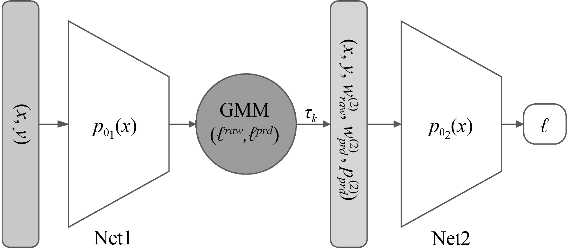 It is well known that deep learning depends on a large amount of clean data. Because of high annotation cost, various methods have been devoted to annotating the data automatically. However, a larger number of the noisy labels are generated in the datasets, which is a challenging problem. In this paper, we propose a new method for selecting training data accurately. Specifically, our approach fits a mixture model to the per-sample loss of the raw label and the predicted label, and the mixture model is utilized to dynamically divide the training set into a correctly labeled set, a correctly predicted set, and a wrong set. Then, a network is trained with these sets in the supervised learning manner. Due to the confirmation bias problem, we train the two networks alternately, and each network establishes the data division to teach the other network. When optimizing network parameters, the labels of the samples fuse respectively by the probabilities from the mixture model. Experiments on CIFAR-10, CIFAR-100 and Clothing1M demonstrate that this method is the same or superior to the state-of-the-art methods.