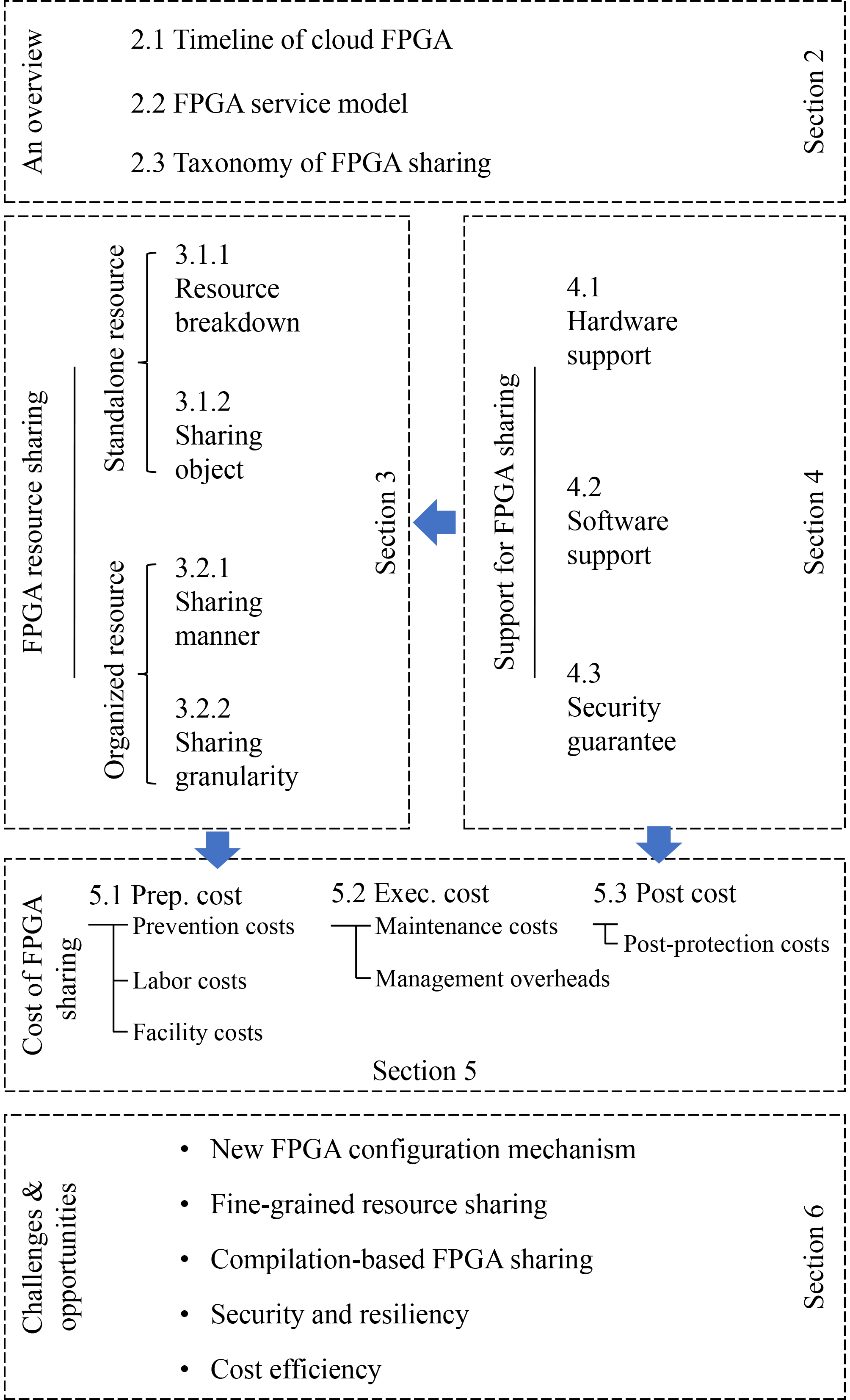 Cloud vendors are actively adopting FPGAs into their infrastructures for enhancing performance and efficiency. As cloud services continue to evolve, FPGA (field programmable gate array) systems would play an even important role in the future. In this context, FPGA sharing in multi-tenancy scenarios is crucial for the wide adoption of FPGA in the cloud. Recently, many works have been done towards effective FPGA sharing at different layers of the cloud computing stack.