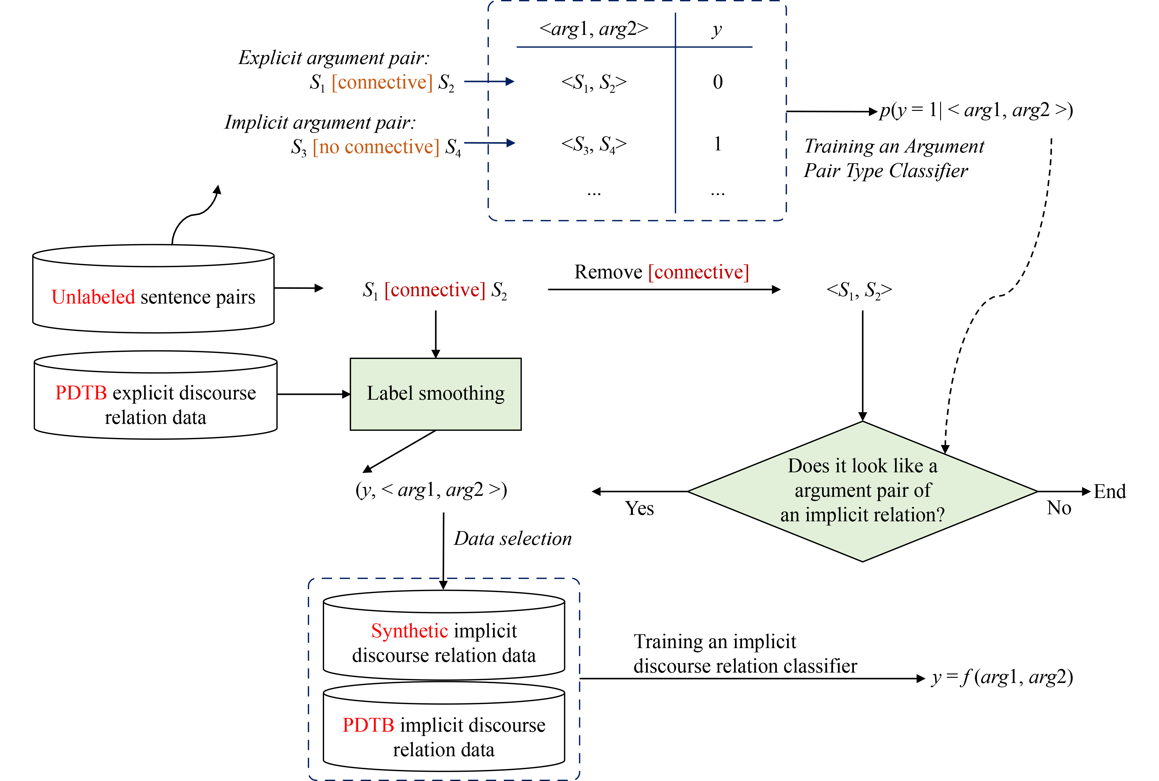 Discourse relation classification is a fundamental task for discourse analysis, which is essential for understanding the structure and connection of texts. Implicit discourse relation classification aims to determine the relationship between adjacent sentences and is very challenging because it lacks explicit discourse connectives as linguistic cues and sufficient annotated training data. In this paper, we propose a discriminative instance selection method to construct synthetic implicit discourse relation data from easy-to-collect explicit discourse relations. An expanded instance consists of an argument pair and its sense label. We introduce the argument pair type classification task, which aims to distinguish between implicit and explicit argument pairs and select the explicit argument pairs that are most similar to natural implicit argument pairs for data expansion. We also propose a simple label-smoothing technique to assign robust sense labels for the selected argument pairs. We evaluate our method on PDTB 2.0 and PDTB 3.0. The results show that our method can consistently improve the performance of the baseline model, and achieve competitive results with the state-of-the-art models.