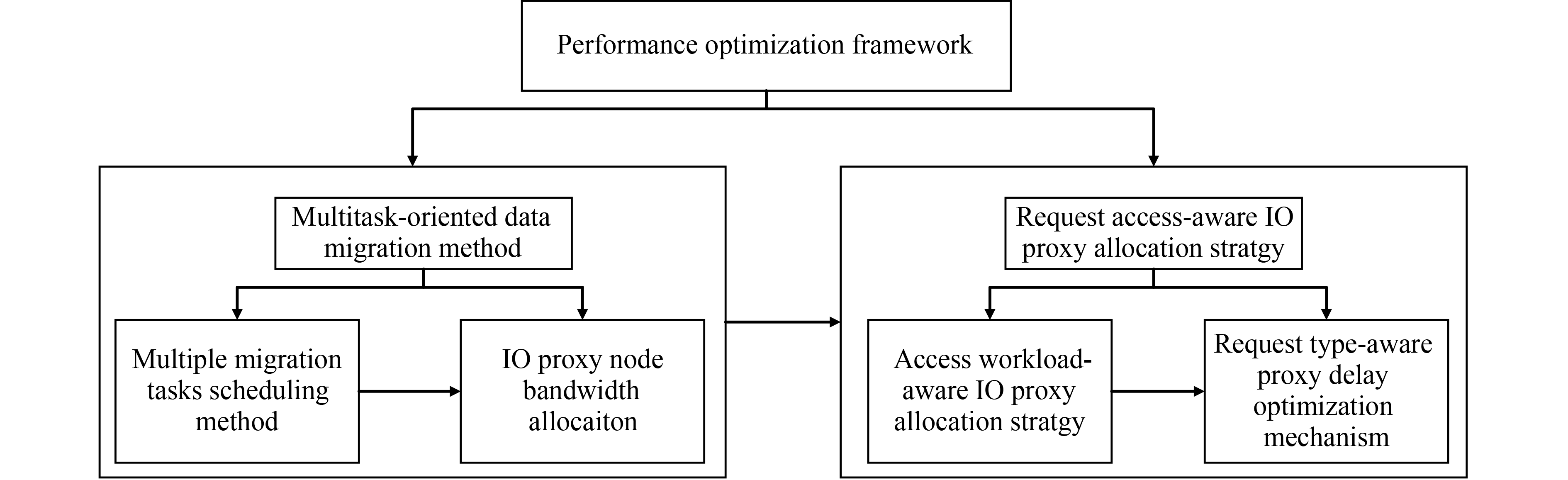 For the high-performance computing in a WAN environment, the geographical locations of national supercomputing centers are scattered and the network topology is complex, so it is difficult to form a unified view of resources. To aggregate the widely dispersed storage resources of national supercomputing centers in China, we have previously proposed a global virtual data space named GVDS in the project of “High Performance Computing Virtual Data Space”, a part of the National Key Research and Development Program of China. The GVDS enables large-scale applications of the high-performance computing to run efficiently across WAN. However, the applications running on the GVDS are often data-intensive, requiring large amounts of data from multiple supercomputing centers across WANs. In this regard, the GVDS suffers from performance bottlenecks in data migration and access across WANs. To solve the above-mentioned problem, this paper proposes a performance optimization framework of GVDS including the multitask-oriented data migration method and the request access-aware IO proxy resource allocation strategy. In a WAN environment, the framework proposed in this paper can make an efficient migration decision based on the amount of migrated data and the number of multiple data sources, guaranteeing lower average migration latency when multiple data migration tasks are running in parallel. In addition, it can ensure that the thread resource of the IO proxy node is fairly allocated among different types of requests (the IO proxy is a module of GVDS), so as to improve the application’s performance across WANs. The experimental results show that the framework can effectively reduce the average data access delay of GVDS while improving the performance of the application greatly.