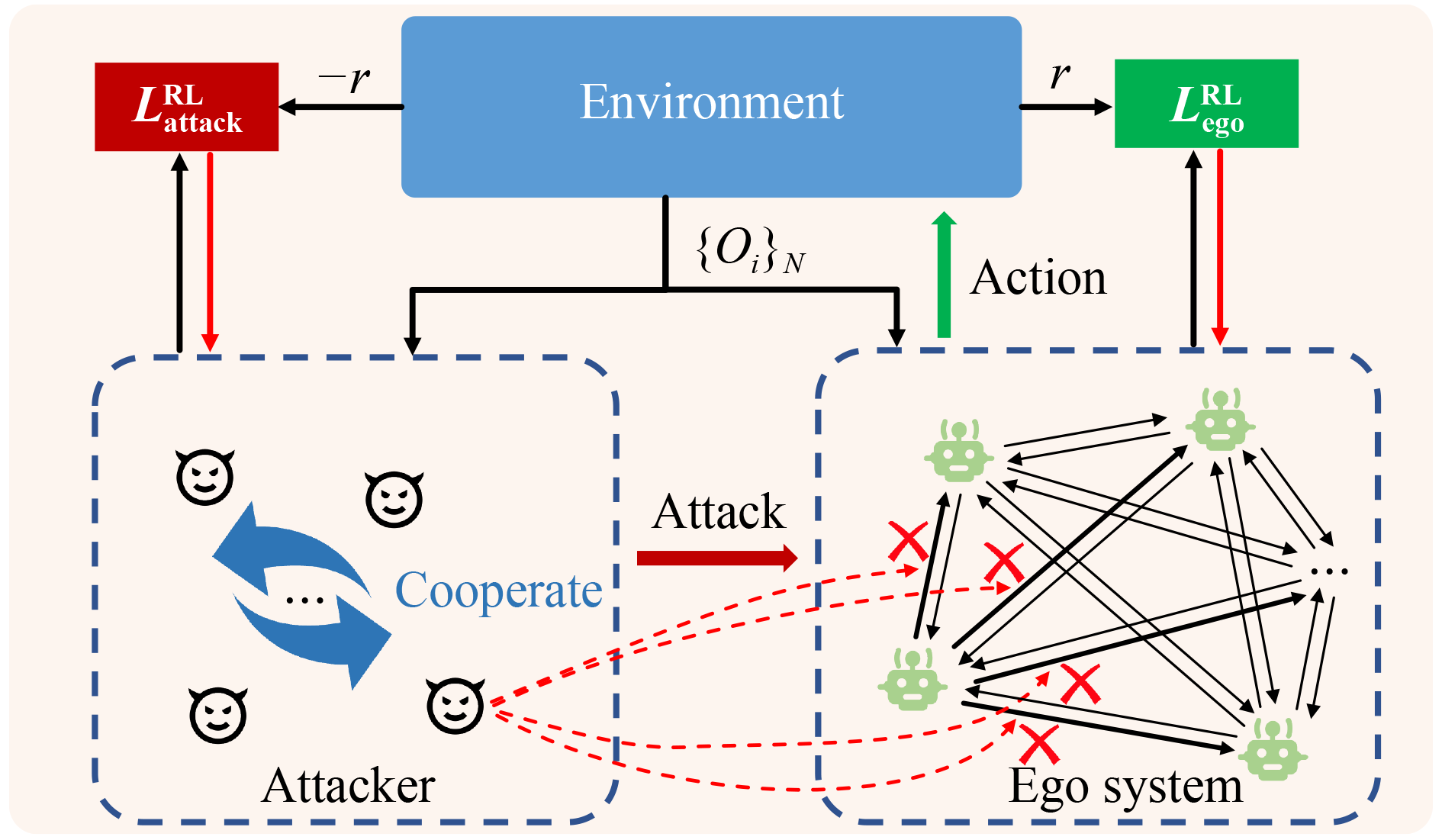 Communication can promote coordination in cooperative Multi-Agent Reinforcement Learning (MARL). Nowadays, existing works mainly focus on improving the communication efficiency of agents, neglecting that real-world communication is much more challenging as there may exist noise or potential attackers. Thus the robustness of the communication-based policies becomes an emergent and severe issue that needs more exploration. In this paper, we posit that the ego system trained with auxiliary adversaries may handle this limitation and propose an adaptable method of Multi-Agent Auxiliary Adversaries Generation for robust Communication, dubbed MA3C, to obtain a robust communication-based policy. In specific, we introduce a novel message-attacking approach that models the learning of the auxiliary attacker as a cooperative problem under a shared goal to minimize the coordination ability of the ego system, with which every information channel may suffer from distinct message attacks. Furthermore, as naive adversarial training may impede the generalization ability of the ego system, we design an attacker population generation approach based on evolutionary learning. Finally, the ego system is paired with an attacker population and then alternatively trained against the continuously evolving attackers to improve its robustness, meaning that both the ego system and the attackers are adaptable. Extensive experiments on multiple benchmarks indicate that our proposed MA3C provides comparable or better robustness and generalization ability than other baselines.