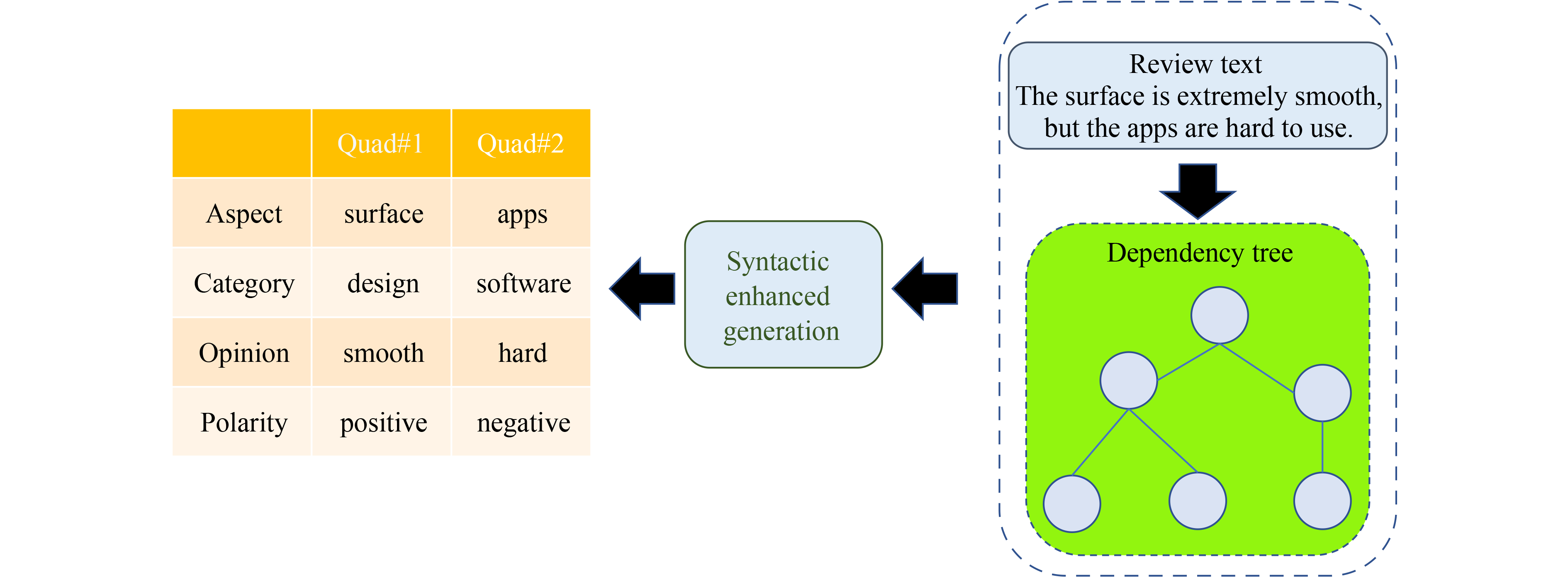 Utilizing pre-trained generation models for predicting sentiment elements has recently shown significant advancements in aspect sentiment quad prediction benchmarks. However, these models overlook the significance of syntactic information, which have proven to be effective in previous extraction-based approaches. Different from extraction-based models, efficiently encoding the syntactic structure in generation model is challenging because such models are pretrained on natural language, and modeling structured data may lead to catastrophic forgetting of distributional knowledge. In this study, we propose an innovative structure-aware framework that explicitly encodes the syntactic structure into the pre-trained generation model while preserving its original distributional knowledge.