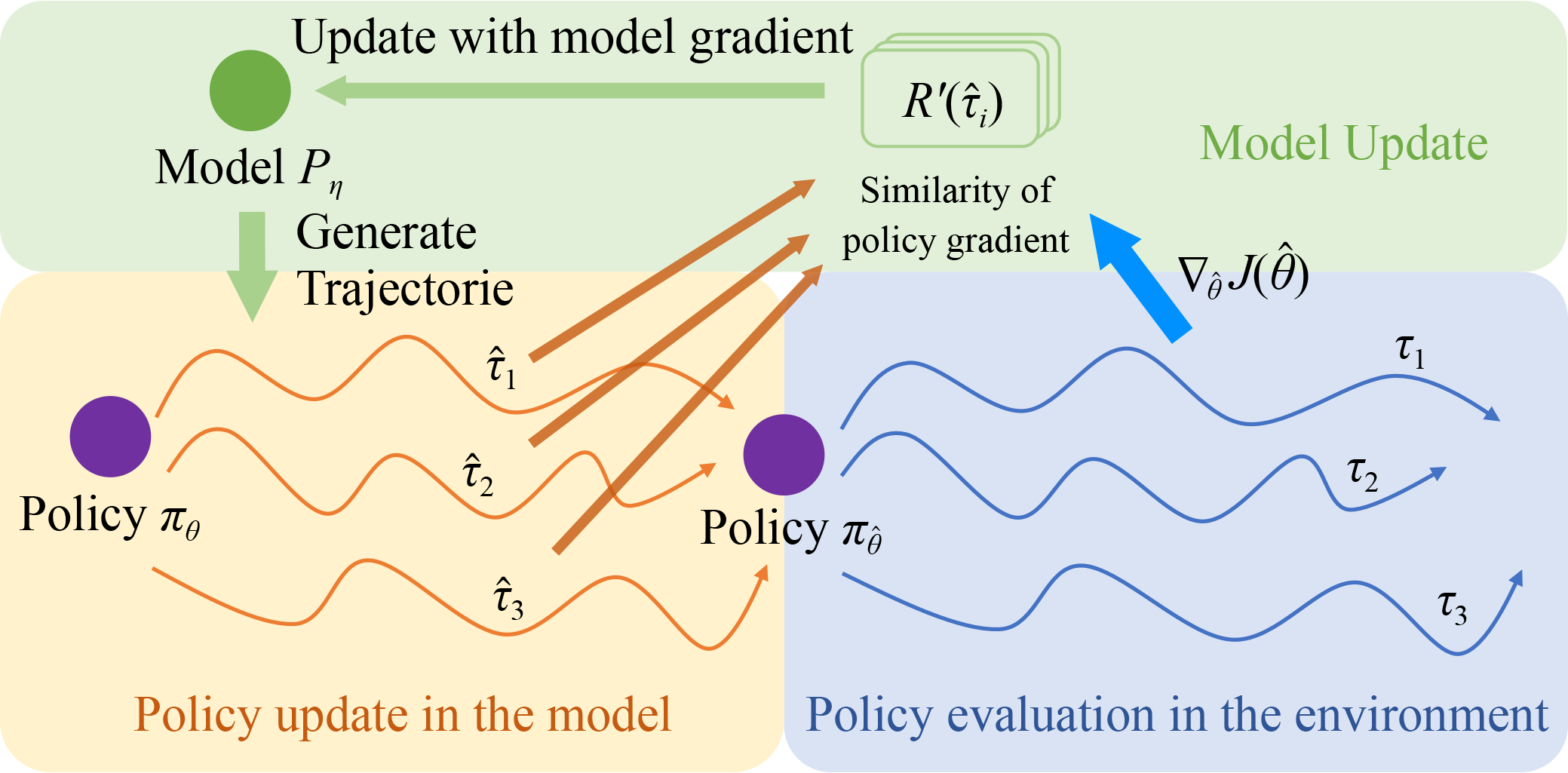 Model-based reinforcement learning is a promising direction to improve the sample efficiency of reinforcement learning with learning a model of the environment. Previous model learning methods aim at fitting the transition data, and commonly employ a supervised learning approach to minimize the distance between the predicted state and the real state. The supervised model learning methods, however, diverge from the ultimate goal of model learning, i.e., optimizing the learned-in-the-model policy. In this work, we investigate how model learning and policy learning can share the same objective of maximizing the expected return in the real environment. We find model learning towards this objective can result in a target of enhancing the similarity between the gradient on generated data and the gradient on the real data. We thus derive the gradient of the model from this target and propose the Model Gradient algorithm (MG) to integrate this novel model learning approach with policy-gradient-based policy optimization. We conduct experiments on multiple locomotion control tasks and find that MG can not only achieve high sample efficiency but also lead to better convergence performance compared to traditional model-based reinforcement learning approaches.
