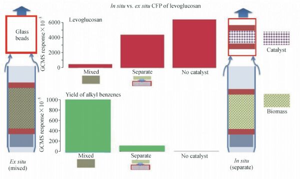 Catalytic fast pyrolysis (CFP) is deemed as the most promising way to convert biomass to transportation fuels or value added chemicals. Most works in literature so far have focused on the in situ CFP where the catalysts are packed or co-fed with the feedstock in the pyrolysis reactor. However, the ex situ CFP with catalysts separated from the pyrolyzer has attracted more and more attentions due to its unique advantages of individually optimizing the pyrolysis conditions and catalyst performances. This review compares the differences between the in situ and ex situ CFP operation, and summarizes the development and progress of ex situ CFP applications, including the rationale and performances of different catalysts, and the choices of suitable ex situ reactor systems. Due to the complex composition of bio-oil, no single approach was believed to be able to solve the problems completely among all those existing technologies. With the increased understanding of catalyst performances and reaction process, the recent trend toward an integration of biomass or bio-oil fractionation with subsequent thermo/bio-chemical conversion routes is also discussed.