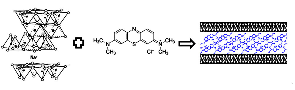 Nano-clay based pigments (NCP) are new type of pigments composed of organic dyes and layered silicate-clay nano-particles, and have already been used in polymeric coatings to improve mechanical thermal and stability properties. In this paper, the basic blue 41(BB41) was intercalated into Na+- montmorillonite in an aqueous medium. The dye-intercalated montmorillonite was centrifuged, dried, and milled to prepare the nanopigment particles. X-ray diffraction showed an increase in the basal spacing, thus confirming intercalation of the BB41 molecules within the nanostructures of the interlayer spaces. Fourier transform infrared spectroscopy was used for identifying the functional groups and chemical bounding of Na+-montmorillonite, BB41 and montmorillonite-BB41. The morphology of NCP was also studied by transmission electron microscopy. Finally, thermo-gravimetric analysis and differential thermograms suggested the thermal stability of the intercalated dye was improved.
