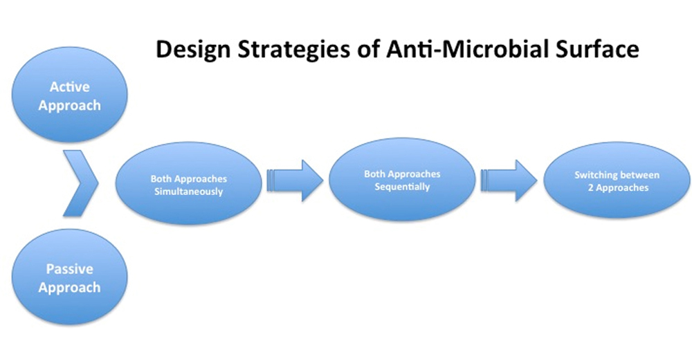 Bacteria adhesion and biofilm formation have raised severe problems on public health, food industry and many other areas. A variety of reagents and surface coatings have been developed to kill bacteria and/or limit their interaction with surfaces. It has also attracted many efforts to integrate different bactericidal elements together and maximize antibacterial efficiency. Herein, we review mechanisms for both passive and active approaches to resist and kill bacteria respectively, and discuss integrated strategies based on these two approaches. We also offer perspective on future research direction.