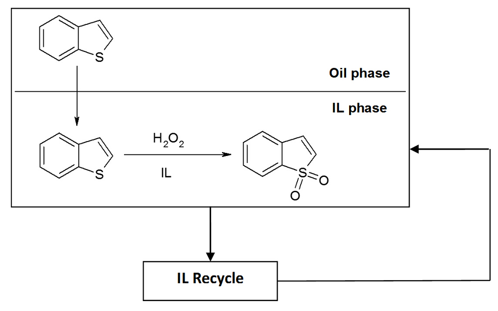 Extractive oxidation, wherein aromatic sulfur-containing compounds are extracted and subsequently oxidized to their corresponding sulfones, has proven to be one of the most effective desulfurization methods for producing ultra-low sulfur content fuels. As non-volatile and highly designable solvents, ionic liquids (ILs) have attracted considerable attention for the oxidative desulfurization of fuels. In this review, we systematically discuss the utility of ILs in catalytic and extractive oxidation, including their role as extractant, catalyst, or both. We also discuss the challenges facing the use of ILs in this regard, including their relatively high cost and excessive viscosity, as well as their efficiency and stability as catalyst.