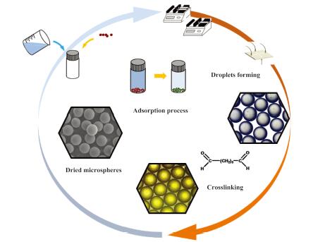A microsphere biosorbent with uniform size (CV= 1.52%), controllable morphology and component, and high mechanical strength was synthesized from chitosan by microfluidic technology combining with chemical crosslinking and solvent extraction. This chitosan microsphere (CS-MS) was prepared with a two-step solidification process, which was acquired by drying for the enhancement of mechanical property in final. The adsorption behavior of CS-MS towards copper (II) and main influencing factors on adsorption performance were investigated by batch experiments. Kinetic data highlighted dominant chemical bonding along with electrons transferring in adsorption process. Isothermal analysis indicated that adsorption capacity was relevant to the number of active site. All these explorations provided a new direction for preparing highly comprehensive performance sorbent used in heavy metal treatment via microfluidic technology.