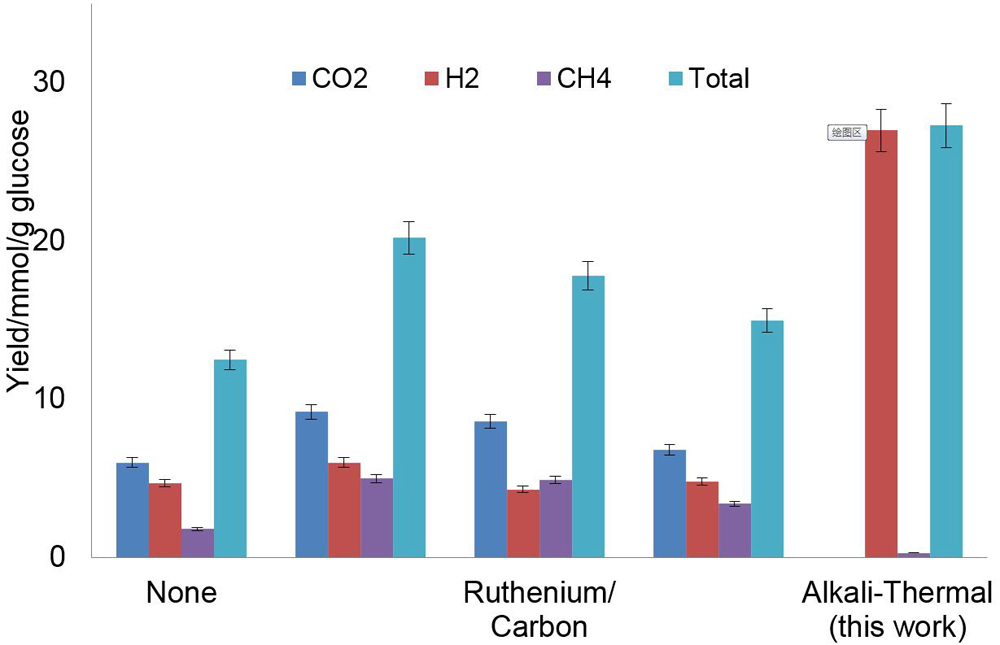 Generating hydrogen gas from biomass is one approach to lowering dependencies on fossil fuels for energy and chemical feedstock, as well as reducing greenhouse gas emissions. Using both equilibrium simulations and batch experiments with NaOH as a model alkaline, this study established the technical feasibility of converting various biomasses (e.g., glucose, cellulose, xylan and lignin) into H2-rich gas via catalyst-free, alkali-thermal gasification at moderate temperatures (as low as 300 °C). This process could produce more H2 with less carbon-containing gases in the product than other comparable methods. It was shown that alkali-thermal gasification follows , with carbonate being the solid product which is different from the one suggested in the literature. Moreover, the concept of hydrogen generation potential (H2-GP)—the maximum amount of H2 that a biomass can yield, was introduced. For a given biomass CxHyOz, the H2-GP would be moles of H2. It was demonstrated experimentally that the H2-GP was achievable by adjusting the amounts of H2O and NaOH, temperature and pressure.