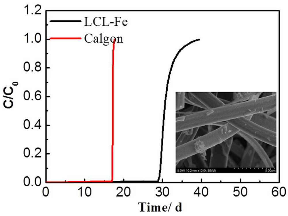 Two types of lignin-based carbon fibers were prepared by electrospinning method. The first was activated with Fe3O4 (LCF-Fe), and the second was not activated with Fe3O4 (LCF). Gas phase adsorption isotherms for toluene on LCF-Fe and LCF were studied. The gas phase adsorption isotherm for 0% RH showed LCF-Fe have about 439 mg/g adsorption capacity which was close to that of commercially available activated carbon (500 mg/g). The Dubinin-Radushkevich equation described the isotherm data very well. Competitive adsorption isotherms between water vapor and toluene were measured for their RH from 0 to 80%. The effect of humidity on toluene gas-phase adsorption was predicted by using the Okazaki et al. model. In addition, a constant pattern homogeneous surface diffusion model (CPHSDM) was used to predict the toluene breakthrough curve of continuous flow-packed columns containing LCF-Fe, and its capacity was 412 mg/g. Our study, which included material characterization, adsorption isotherms, kinetics, the impact of humidity and fixed bed performance modeling, demonstrated the suitability of lignin-based carbon fiber for volatile organic compound removal from gas streams.
