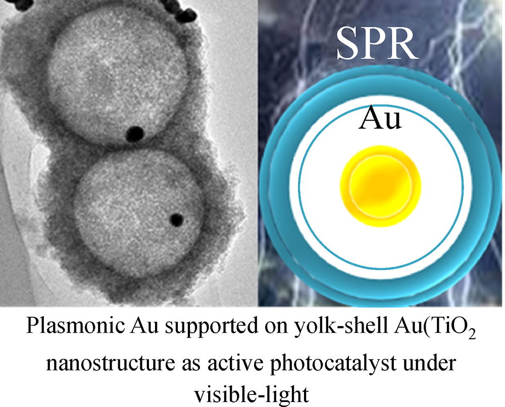A strategy of intensifying the visible light harvesting ability of anatase TiO 2 hollow spheres (HSs) was developed, in which both sides of TiO 2 HSs were utilised for stabilising Au nanoparticles (NPs) through the sacrificial templating method and convex surface-induced confinement. The composite structure of single Au NP yolk-TiO 2 shell-Au NPs, denoted as Au@Au(TiO 2, was rendered and confirmed by the transmission electron microscopy analysis. Au@Au(TiO 2 showed enhanced photocatalytic activity in the degradation of methylene blue and phenol in aqueous phase under visible light surpassing that of other reference materials such as Au(TiO 2 by 77% and Au@P25 by 52%, respectively, in phenol degradation.
