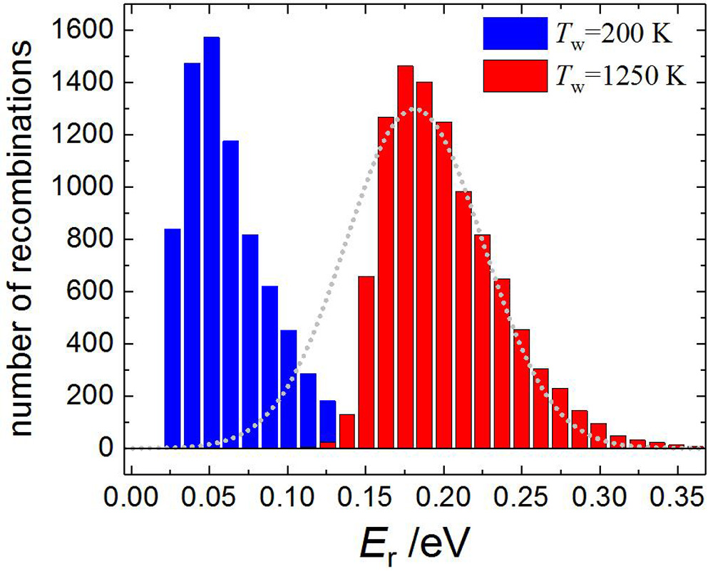 Reactions of atoms and molecules on chamber walls in contact with low temperature plasmas are important in various technological applications. Plasma-surface interactions are complex and relatively poorly understood. Experiments performed over the last decade by several groups prove that interactions of reactive species with relevant plasma-facing materials are characterized by distributions of adsorption energy and reactivity. In this paper, we develop a kinetic Monte Carlo (KMC) model that can effectively handle chemical kinetics on such heterogenous surfaces. Using this model, we analyse published adsorption-desorption kinetics of chlorine molecules and recombination of oxygen atoms on rotating substrates as a test case for the KMC model.