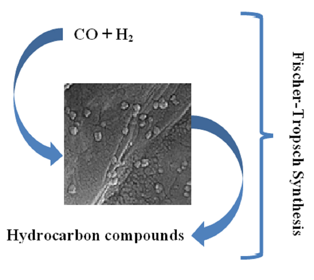 In this paper, a series of cobalt catalysts supported on reduced graphene oxide (rGO) nanosheets with the loading of 5, 15 and 30 wt-% were provided by the impregnation method. The activity of the prepared catalysts is evaluated in the Fischer-Tropsch synthesis (FTS). The prepared catalysts were carefully characterized by nitrogen adsorption-desorption, hydrogen chemisorption, X-ray diffraction, Fourier transform infrared spectroscopy, Raman spectroscopy, temperature programmed reduction, transmission electron microscopy, and field emission scanning electron microscopy techniques to confirm that cobalt particles were greatly dispersed on the rGO nanosheets. The results showed that with increasing the cobalt loading on the rGO support, the carbon defects are increased and as a consequence, the reduction of cobalt is decreased. The FTS activity results showed that the cobalt-time yield and turnover frequency passed from a maximum for catalyst with the Co0 average particle size of 15 nm due to the synergetic effect of cobalt reducibility and particle size. The products selectivity results indicated that the methane selectivity decreases, whereas the C5+ selectivity raises with the increasing of the cobalt particle size, which can be explained by chain propagation in the primary chain growth reactions.