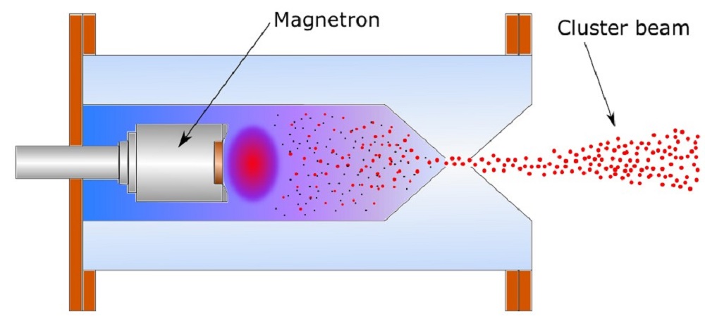 Many research works have demonstrated that the combination of atomically precise cluster deposition and theoretical calculations is able to address fundamental aspects of size-effects, cluster-support interactions, and reaction mechanisms of cluster materials. Although the wet chemistry method has been widely used to synthesize nanoparticles, the gas-phase synthesis and size-selected strategy was the only method to prepare supported metal clusters with precise numbers of atoms for a long time. However, the low throughput of the physical synthesis method has severely constrained its wider adoption for catalysis applications. In this review, we introduce the latest progress on three types of cluster source which have the most promising potential for scale-up, including sputtering gas aggregation source, pulsed microplasma cluster source, and matrix assembly cluster source. While the sputtering gas aggregation source is leading ahead with a production rate of ~20 mg·h–1, the pulsed microplasma source has the smallest physical dimensions which makes it possible to compact multiple such devices into a small volume for multiplied production rate. The matrix assembly source has the shortest development history, but already show an impressive deposition rate of ~10 mg·h–1. At the end of the review, the possible routes for further throughput scale-up are envisaged.