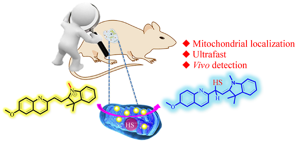 Heterocyclic compound quinoline and its derivatives exist in natural compounds and have a broad spectrum of biological activity. They play an important role in the design of new structural entities for medical applications. Similarly, indoles and their derivatives are found widely in nature. Amino acids, alkaloids and auxin are all derivatives of indoles, as are dyes, and their condensation with aldehydes makes it easy to construct reaction sites for nucleophilic addition agents. In this work, we combine these two groups organically to construct a rapid response site (within 30 s) for H2S, and at the same time, a ratiometric fluorescence response is presented throughout the process of H2S detection. As such, the lower detection limit can reach 55.7 nmol/L for H2S. In addition, cell imaging shows that this probe can be used for the mitochondrial targeted detection of endogenous and exogenous H2S. Finally, this probe application was verified by imaging H2S in nude mice.