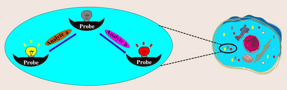Fluorescent technology associated with small molecular probes have been widely used for studying of molecular events in biological systems due to its excellent performances, including noninvasive, high sensitivity and selectivity, and high spatial temporal resolution. Particularly, small molecule fluorescent probes have been successively developed to simultaneously monitor two biomolecules to uncover their interrelationships and synergistic regulations in related diseases. In this review, we fo