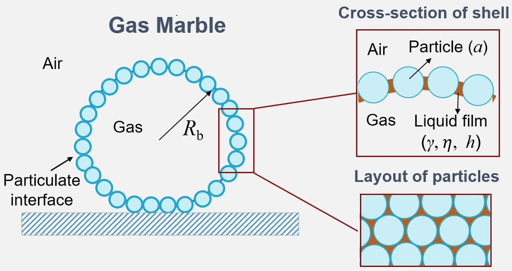Bubbles and foams are ubiquitous in daily life and industrial processes. Studying their dynamic behaviors is of key importance for foam manufacturing processes in food packaging, cosmetics and pharmaceuticals. Bare bubbles are inherently fragile and transient; enhancing their robustness and shelf lives is an ongoing challenge. Their rupture can be attributed to liquid evaporation, thin film drainage and the nuclei of environmental dust. Inspired by particle-stabilized interfaces in Pickering emulsions, armored bubbles and liquid marble, bubbles are protected by an enclosed particle-entrapping liquid thin film, and the resultant soft object is termed gas marble. The gas marble exhibits mechanical strength orders of magnitude higher than that of soap bubbles when subjected to overpressure and underpressure, owing to the compact particle monolayer straddling the surface liquid film. By using a water-absorbent glycerol solution, the resulting gas marble can persist for 465 d in normal atmospheric settings. This particle-stabilizing approach not only has practical implications for foam manufacturing processes but also can inspire the new design and fabrication of functional biomaterials and biomedicines.