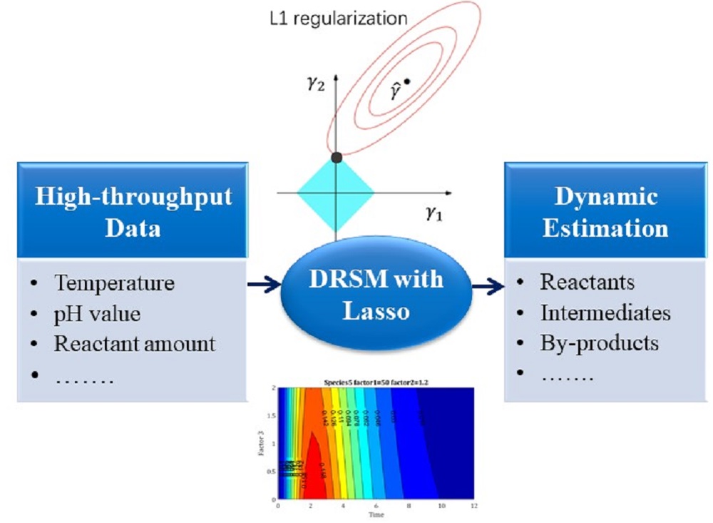 To study the dynamic behavior of a process, time-resolved data are collected at different time instants during each of a series of experiments, which are usually designed with the design of experiments or the design of dynamic experiments methodologies. For utilizing such time-resolved data to model the dynamic behavior, dynamic response surface methodology (DRSM), a data-driven modeling method, has been proposed. Two approaches can be adopted in the estimation of the model parameters: stepwise regression, used in several of previous publications, and Lasso regression, which is newly incorporated in this paper for the estimation of DRSM models. Here, we show that both approaches yield similarly accurate models, while the computational time of Lasso is on average two magnitude smaller. Two case studies are performed to show the advantages of the proposed method. In the first case study, where the concentrations of different species are modeled directly, DRSM method provides more accurate models compared to the models in the literature. The second case study, where the reaction extents are modeled instead of the species concentrations, illustrates the versatility of the DRSM methodology. Therefore, DRSM with Lasso regression can provide faster and more accurate data-driven models for a variety of organic synthesis datasets.