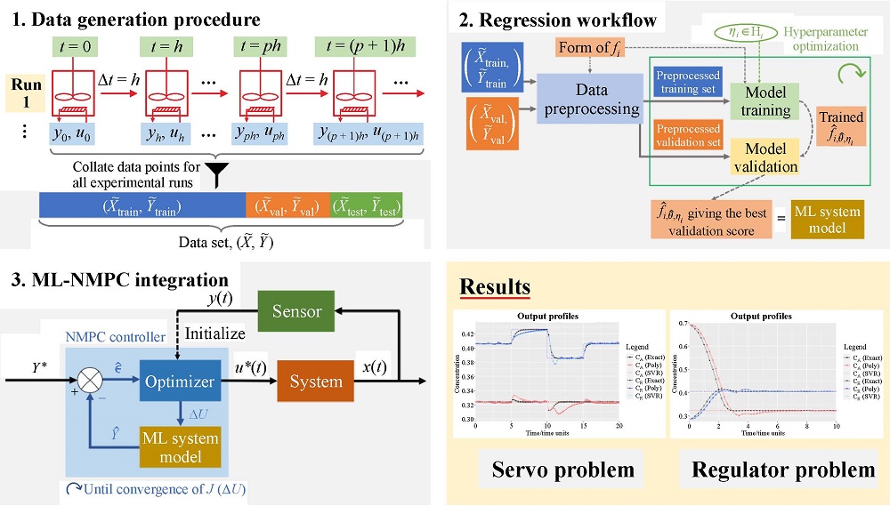 Advanced model-based control strategies, e.g., model predictive control, can offer superior control of key process variables for multiple-input multiple-output systems. The quality of the system model is critical to controller performance and should adequately describe the process dynamics across its operating range while remaining amenable to fast optimization. This work articulates an integrated system identification procedure for deriving black-box nonlinear continuous-time multiple-input multiple-output system models for nonlinear model predictive control. To showcase this approach, five candidate models for polynomial and interaction features of both output and manipulated variables were trained on simulated data and integrated into a nonlinear model predictive controller for a highly nonlinear continuous stirred tank reactor system. This procedure successfully identified system models that enabled effective control in both servo and regulator problems across wider operating ranges. These controllers also had reasonable per-iteration times of ca. 0.1 s. This demonstration of how such system models could be identified for nonlinear model predictive control without prior knowledge of system dynamics opens further possibilities for direct data-driven methodologies for model-based control which, in the face of process uncertainties or modelling limitations, allow rapid and stable control over wider operating ranges.
