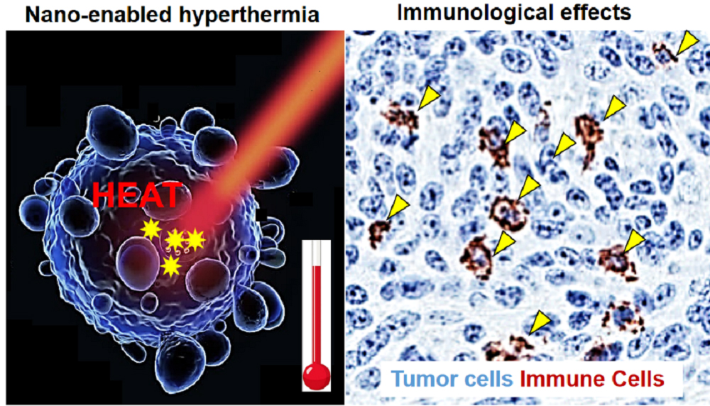Compared to conventional hyperthermia that is limited by low selectivity and severe side effects, nano-enabled hyperthermia yields great potentials to tackle these limitations for cancer treatment. Another major advance is the observation of immunological responses associated with nano-enabled hyperthermia, which introduces a new avenue, allowing a potential paradigm shift from the acutely effective and cytotoxicity-centric response to the next-phase discovery, i.e., long-lasting and/or systemic anti-tumor immunity. This perspective first discusses the temperature-gradient and the spatially-structured immunological landscape in solid tumors receiving nano-enabled hyperthermia. This includes the discussion about underlying mechanism such as immunogenic cell death, which initiates a profound immunological chain reaction. In order to propagate the immune activation as a viable therapeutic principle, we further discussed the tumor type-specific complexity in the immunological tumor microenvironment, including the creative design of nano-enabled combination therapy to synergize with nano-enabled hyperthermia.