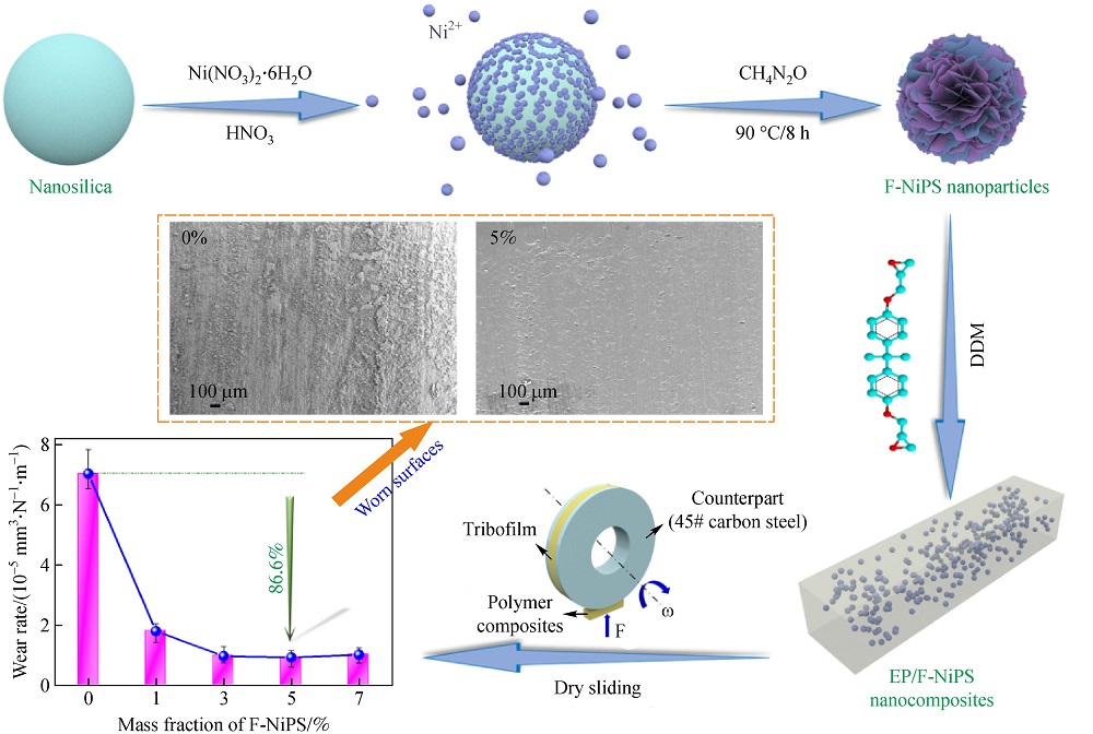 (Jinian Yang, Xuesong Feng, Shibin Nie, Yuxuan Xu, Zhenyu Li, pp. 484–497) Due to the intrinsic drawbacks of relatively high brittleness and poor wear resistance, epoxy products cannot undergo the rubbing actions under dry sliding and hard to be sate when served as engineering parts. Yang et al. propose a promising solution to solve the above problem by introducing low-content flower-like nickel phyllosilicates to yield the cost-effective epoxy nanocomposites with highly restricted abrasions. Flower-like particles are well-constructed firstly and then served as e [Detail] ...