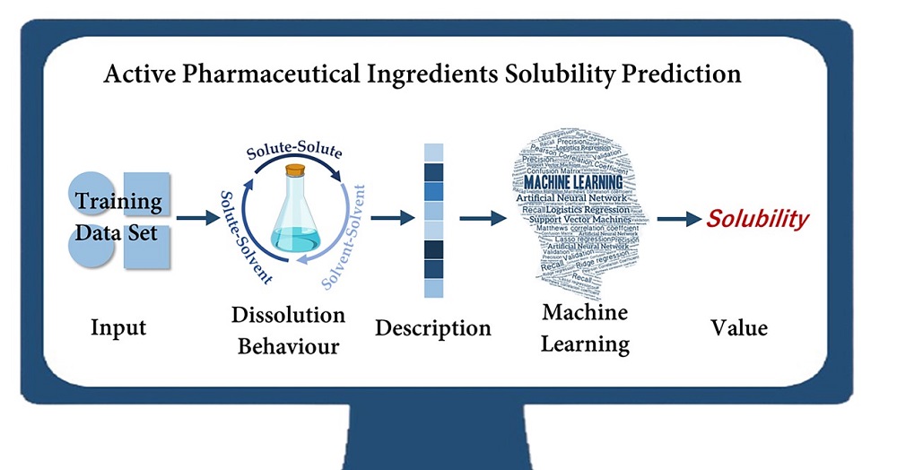 Solubility has been widely regarded as a fundamental property of small molecule drugs and drug candidates, as it has a profound impact on the crystallization process. Solubility prediction, as an alternative to experiments which can reduce waste and improve crystallization process efficiency, has attracted increasing attention. However, there are still many urgent challenges thus far. Herein we used seven descriptors based on understanding dissolution behavior to establish two solubility prediction models by machine learning algorithms. The solubility data of 120 active pharmaceutical ingredients (APIs) in ethanol were considered in the prediction models, which were constructed by random decision forests and artificial neural network with optimized data structure and model accuracy. Furthermore, a comparison with traditional prediction methods including the modified solubility equation and the quantitative structure-property relationships model was carried out. The highest accuracy shown by the testing set proves that the ML models have the best solubility prediction ability. Multiple linear regression and stepwise regression were used to further investigate the critical factor in determining solubility value. The results revealed that the API properties and the solute-solvent interaction both provide a nonnegligible contribution to the solubility value.