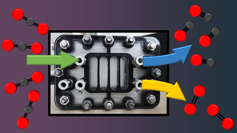 In recent times there has been a great deal of interest in the conversion of carbon dioxide into more useful chemical compounds. On the other hand, the translation of these developments in electrochemical reduction of carbon dioxide from the laboratory bench to practical scale remains an underexplored topic. Here we examine some of the major challenges, demonstrating some promising strategies towards such scale-up, including increased electrode area and stacking of electrode pairs in different configurations. We observed that increasing the electrode area from 1 to 10 cm 2 led to only a 4% drop in current density, with similarly small penalties realised when stacking sub-cells together.