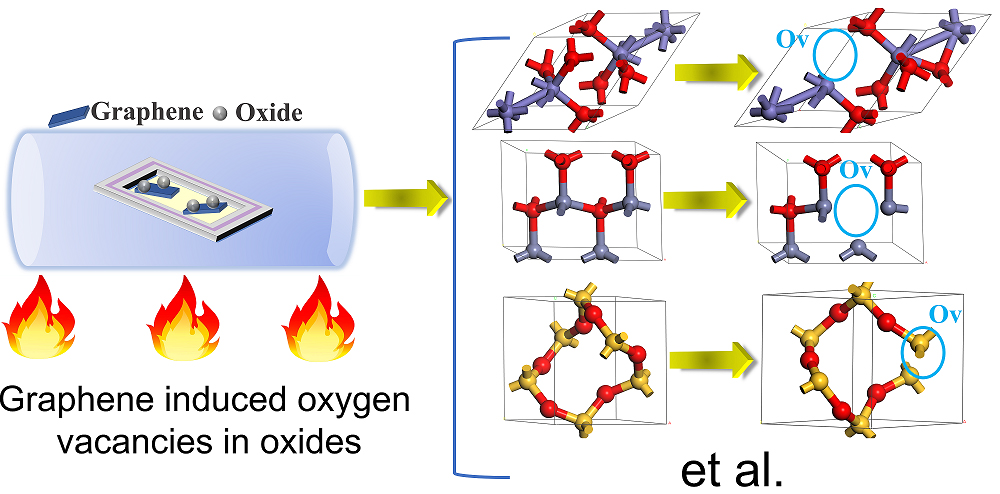 Currently, graphene is only considered as a conductive additive and expansion inhibitor in oxides/graphene composite anodes. In this study, a new graphene role (oxygen vacancy inducer) in graphene/oxides composites anodes, which are treated at high-temperature, is proposed and verified using experiments and density functional theory calculations. During high-temperature processing, graphene forms carbon vacancies due to increased thermal vibration, and the carbon vacancies capture oxygen atoms, facilitating the formation of oxygen vacancies in oxides. Moreover, the induced oxygen vacancy concentrations can be regulated by sintering temperatures, and the behavior is unaffected by oxide crystal structures (crystalline and amorphous) and morphology (size and shape). According to density functional theory calculations and electrochemical measurements, the oxygen vacancies enhance the lithium-ion storage performance. The findings can result in a better understanding of graphene’s roles in graphene/oxide composite anodes, and provide a new method for designing high-performance oxide anodes.
