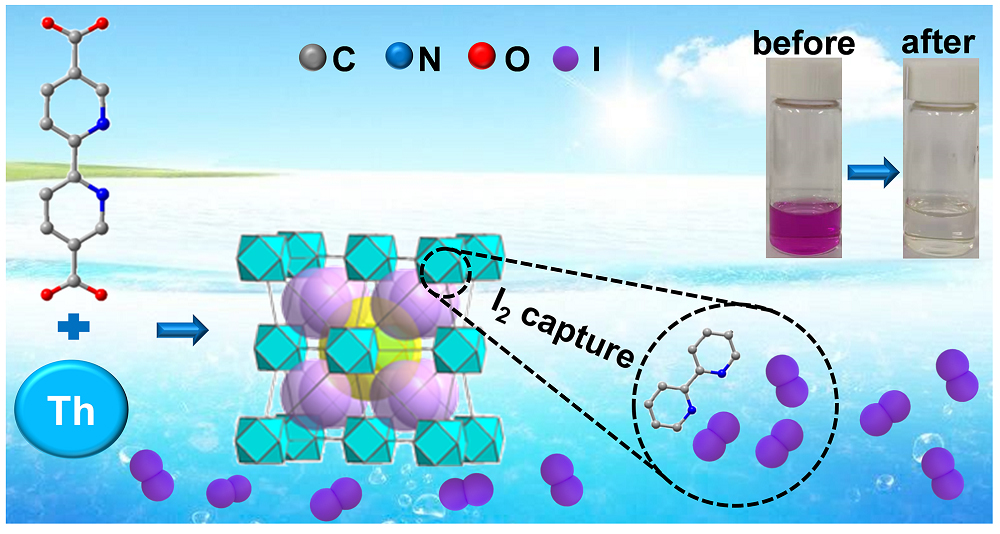 Radioactive iodine exhibits medical values in radiology, but its excessive emissions can cause environmental pollution. Thus, the capture of radioiodine poses significant engineering for the environment and medical radiology. On the cover image, a Th-based MOF (Th-BPYDC) with octahedral structure was synthesized by hydrothermal methods, consisting of 12-linked polyhedral [Th6(μ3-O)4(μ3-OH)4((H2O)6]12+ clusters, abundant bipyridine units and large cavities allowing diffusion and transport of the guest iodine molecule. Th-BPYDC exhibited an effective uptake capacity [Detail] ...