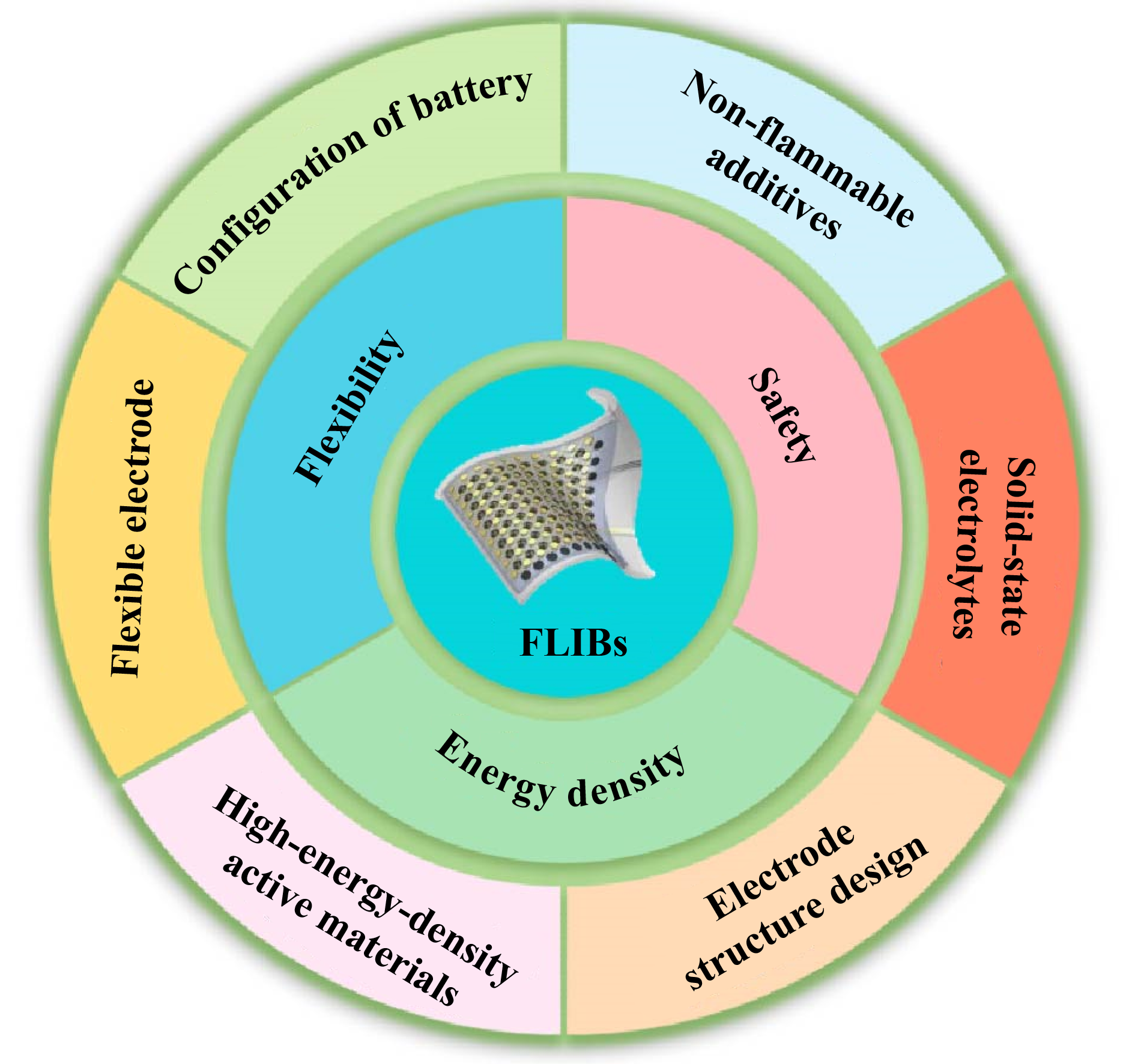 With the rapid iteration and update of wearable flexible devices, high-energy-density flexible lithium-ion batteries are rapidly thriving. Flexibility, energy density, and safety are all important indicators for flexible lithium-ion batteries, which can be determined jointly by material selection and structural design. Here, recent progress on high-energy-density electrode materials and flexible structure designs are discussed. Commercialized electrode materials and the next-generation high-energy-density electrode materials are analyzed in detail. The electrolytes with high safety and excellent flexibility are classified and discussed. The strategies to increase the mass loading of active materials on the electrodes by designing the current collector and electrode structure are discussed with keys of representative works. And the novel configuration structures to enhance the flexibility of batteries are displayed. In the end, it is pointed out that it is necessary to quantify the comprehensive performance of flexible lithium-ion batteries and simultaneously enhance the energy density, flexibility, and safety of batteries for the development of the next-generation high-energy-density flexible lithium-ion batteries.